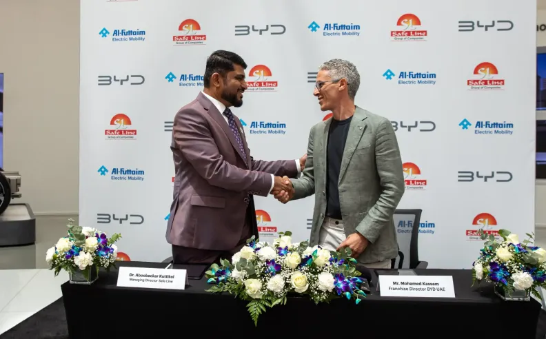 تمت هذه الاتفاقية برعاية شركة الفطيم للتنقل الكهربائي، إحدى شركات الفطيم والرائدة في تعزيز حلول التنقل المستدام، حيث تشمل توريد 12 مركبة كهربائية بالكامل من "بي واي دي" لمجموعة سيف لاين، في خطوة محورية ضمن خطتها الشاملة لتحويل أسطولها بالكامل من مركبات محركات الاحتراق الداخلي (ICE) إلى مركبات كهربائية. كما تُعزز هذه الشراكة ريادة الفطيم للتنقل الكهربائي في تسريع التحول نحو الاعتماد على المركبات الكهربائية ضمن قطاعات اللوجستيات والأساطيل التجارية، بما يتماشى مع الأهداف الطموحة لدولة الإمارات في مجال الاستدامة.