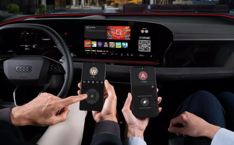 وقد انضمت أودي إلى هذا التوجه بشغف، حيث أدخلت في بعض طرازاتها الحديثة منصة ألعاب مدمجة تُدعى AirConsole، وهي نظام ترفيهي جديد يتيح للركّاب ممارسة الألعاب مباشرة عبر شاشة المعلومات الرئيسية أو شاشة الراكب الأمامي (MMI Passenger Display)، والتي تتوفر في بعض الطرازات الجديدة مثل A5 وQ5 وA6 وQ6 e-tron.