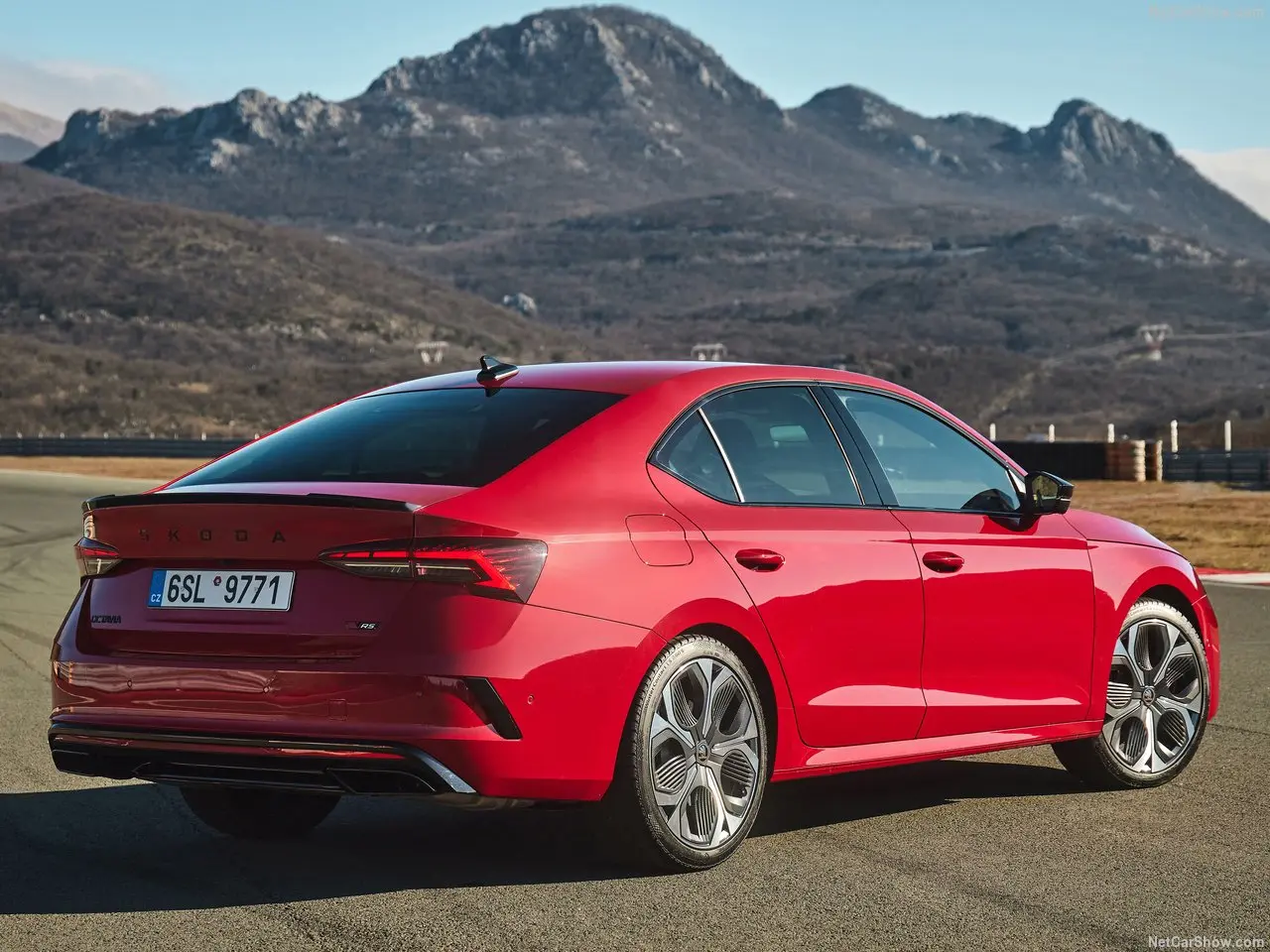 التصميم الخارجي لشكودا أوكتافيا RS 2025 يُظهر نضجًا وثقة في الهوية. فالمقدمة العدوانية مزوّدة بمصابيح Matrix LED حادة، وشبك أمامي أسود يحمل شارة RS بفخر. ومن الجانبين، تمنح الجنوط الرياضية بقياس 19 إنش طابعًا هجوميًا، وتكتمل الشخصية القوية بخطوط ديناميكية تنساب حتى الخلف حيث نجد مشتت الهواء والمخارج الثنائية للعادم بلون الكروم الداكن.