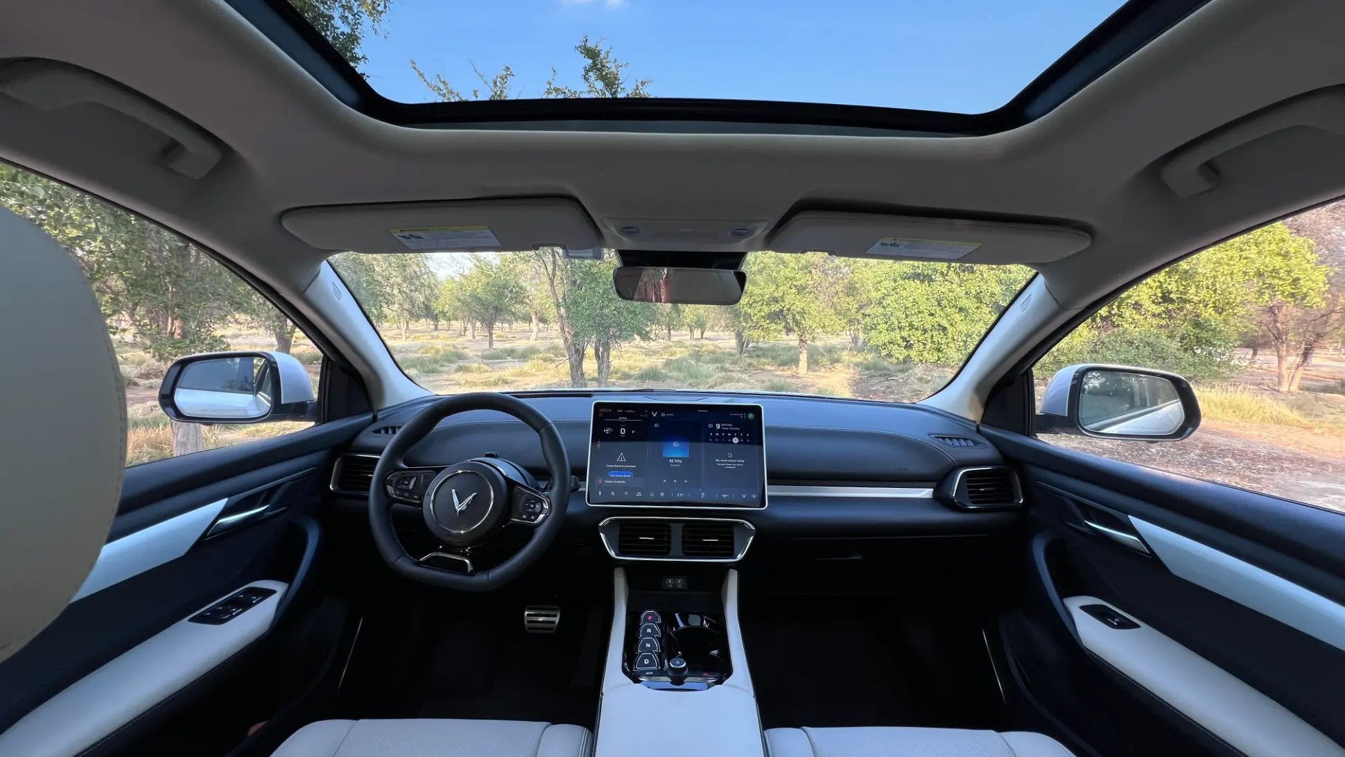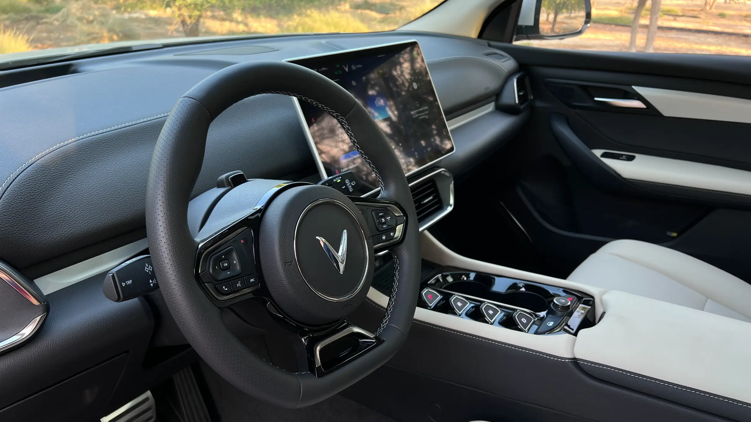 بمجرد دخولك للمقصورة، ستجد أن فينفاست VF8 توفر بيئة تجمع بين الراحة والابتكار. حيث تهيمن الشاشة المركزية الضخمة بقياس 15.6 بوصة على لوحة القيادة، لتقدم نظامًا ترفيهيًا متكاملاً يدعم التفاعل الصوتي وتحديثات البرامج عن بُعد. كما أن الخامات المستخدمة داخل المقصورة، مثل الجلود الفاخرة والأسطح المصقولة، تضفي شعورًا بالرفاهية.