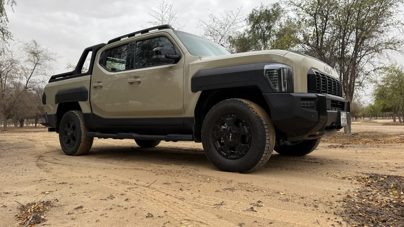 وجدنا من خلال تجربة قيادتنا أن كيا تاسمان تعتمد على لغة تصميمية جريئة وصندوقية تبتعد عن الانحناءات الناعمة لسيارات الكروس أوفر، لتركز على الوظيفة والقوة، فتبرز الشاحنة بواجهة أمامية عريضة وإضاءة عمودية مستوحاة من طرازات كيا الكهربائية الحديثة مثل EV9، مع رفارف جانبية بارزة تمنحها مظهراً عضلياً يوحي بالقدرة على اجتياز أصعب التضاريس.