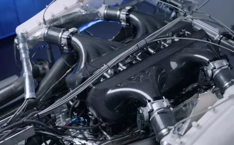 Beyond its intricate timing setup, the Bugatti V16 engine boasts features crafted for peak performance and sound. Tests reveal a carbon fiber intake chamber fitted with four throttle bodies, believed to be sourced from Bosch, optimizing air intake efficiency. The variable valve timing system, reminiscent of technology seen in earlier Audi engines, ensures dynamic responsiveness without the added complexity of variable valve lift mechanisms.