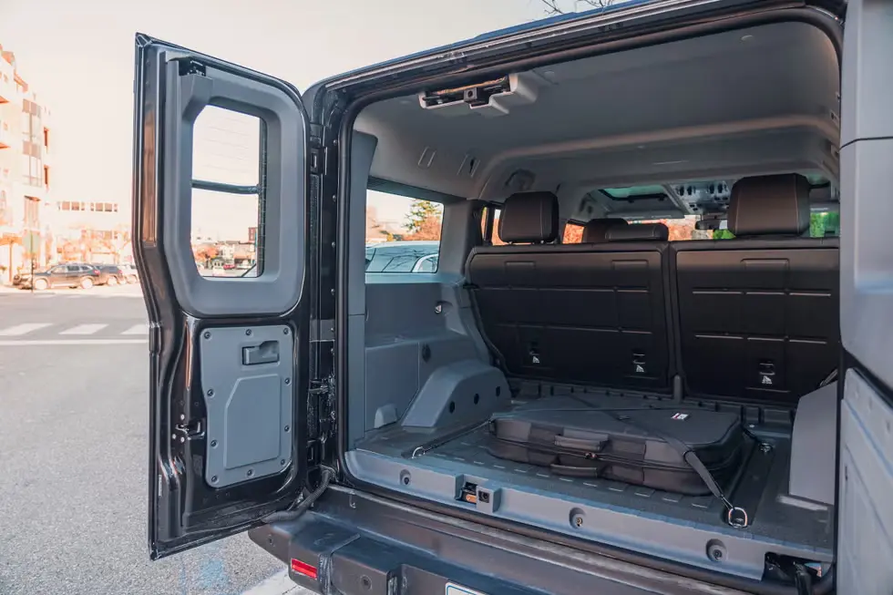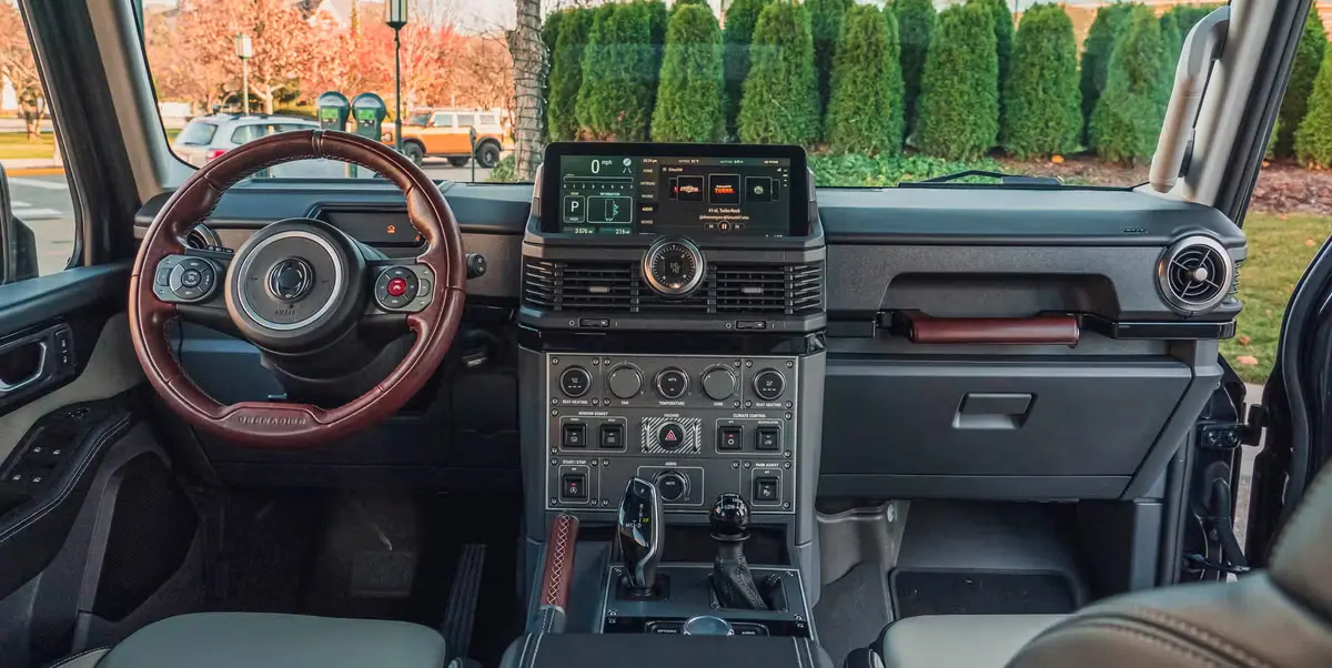 Inside, the Grenadier emphasizes practical utility and durability, featuring a 12.3-inch central touchscreen that combines infotainment and instrumentation. Practicality is evident in its spacious storage options, including a sizable central box and glove compartment. Unique touches like a softer secondary horn designed specifically to alert pedestrians and cyclists highlight thoughtful engineering details. Although modern tech such as lane departure warnings, automatic emergency braking, speed limit detection, and driver drowsiness monitoring is standard, the Grenadier focuses on function and capability over plush luxury. Connectivity includes USB-A and USB-C charging ports, though wireless charging is not available, reinforcing the Grenadier's utilitarian character.