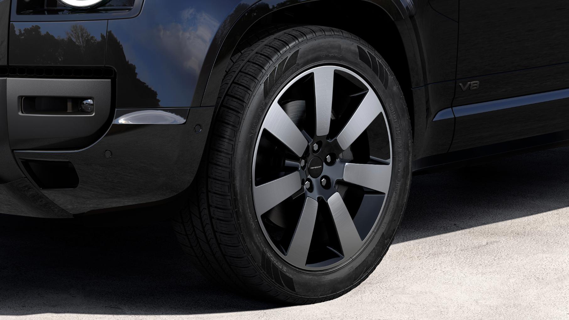 bonnet inserts and side vents, creating a strong and adventurous look. All models get new Gloss Black Defender-branded wheel centre caps.