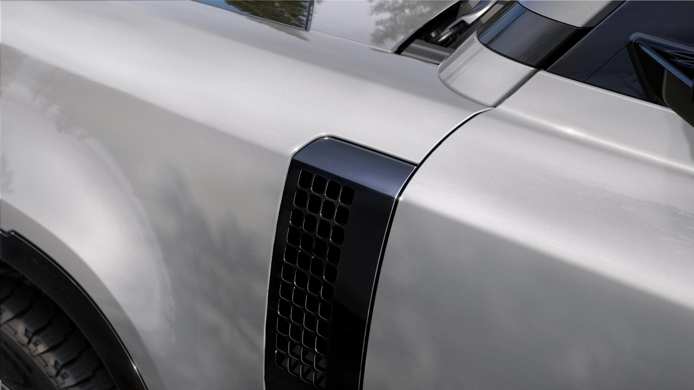 Defender’s tough exterior receives optimised surfaces for the new front and rear bumpers – whether finished in Silicon Silver or Carpathian Grey Satin on most models – and a new textured pattern for the