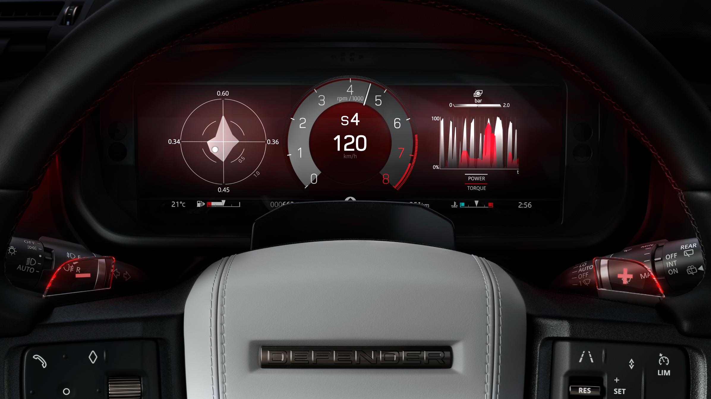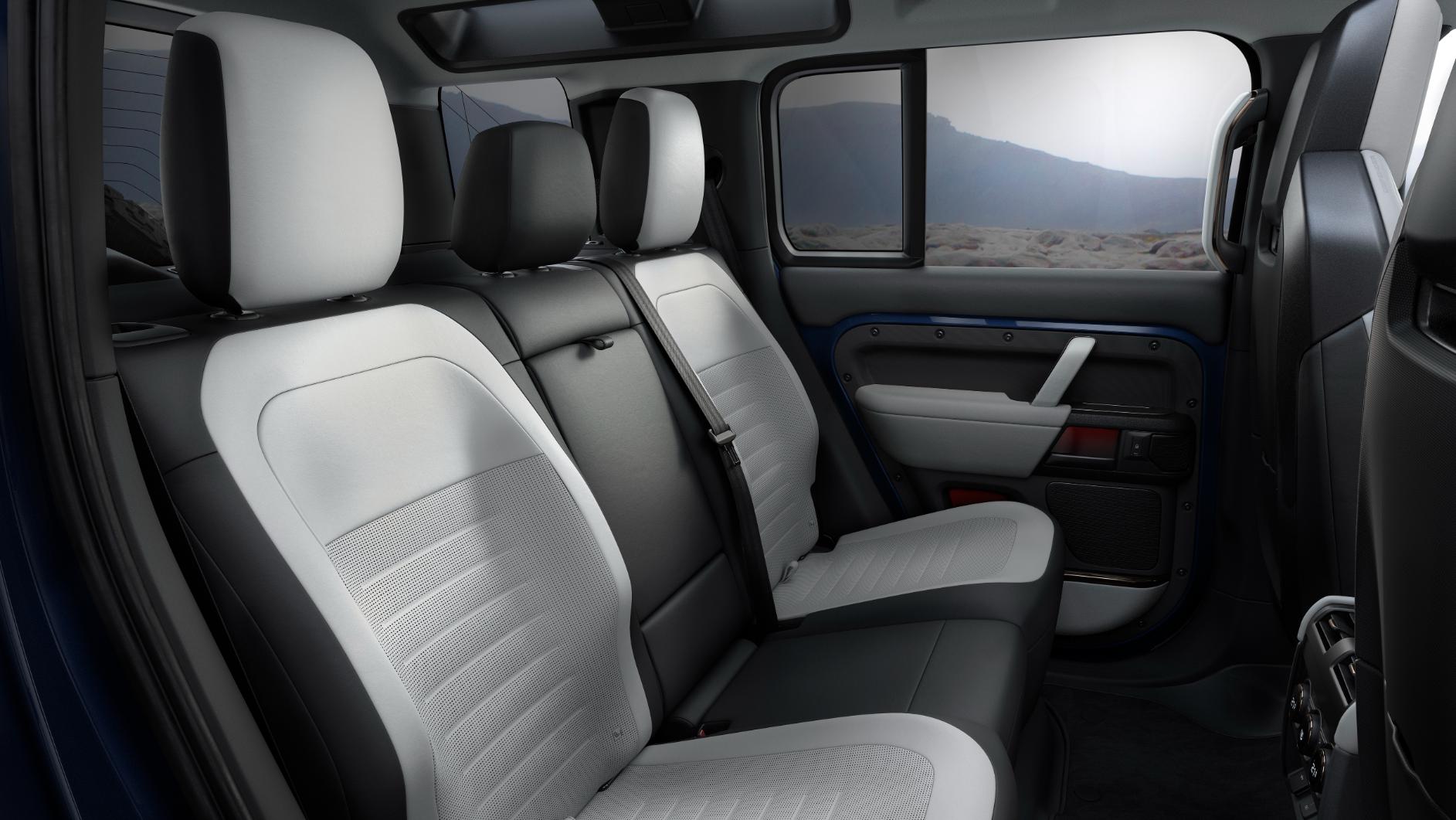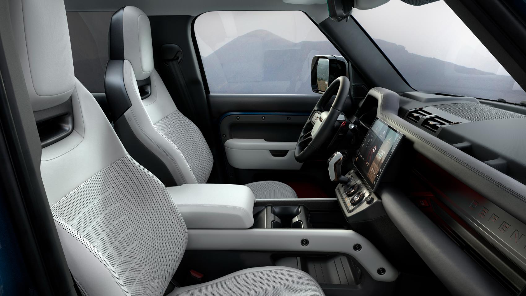Inside, a new 13.1-inch touchscreen for the infotainment system brings all of Defender’s technology highlights to the front-row occupants via a larger display, above the ergonomically repositioned dash-mounted gear shifter.