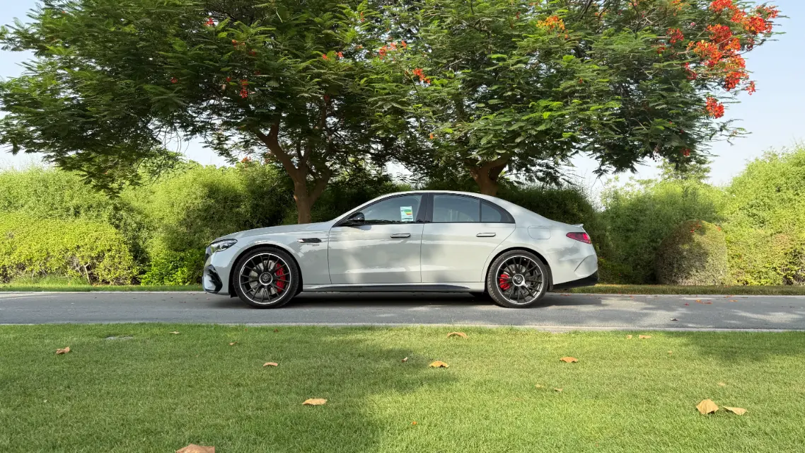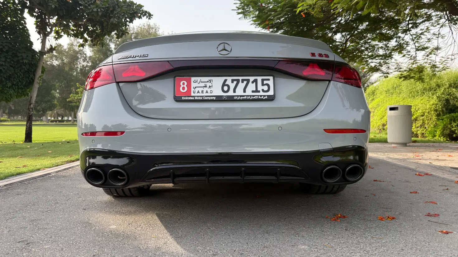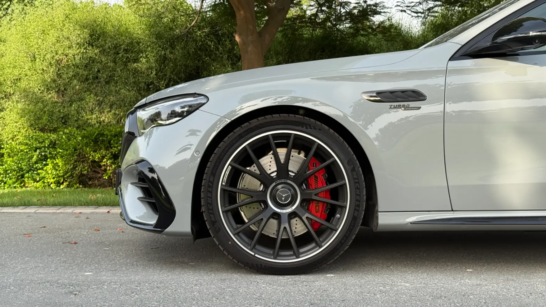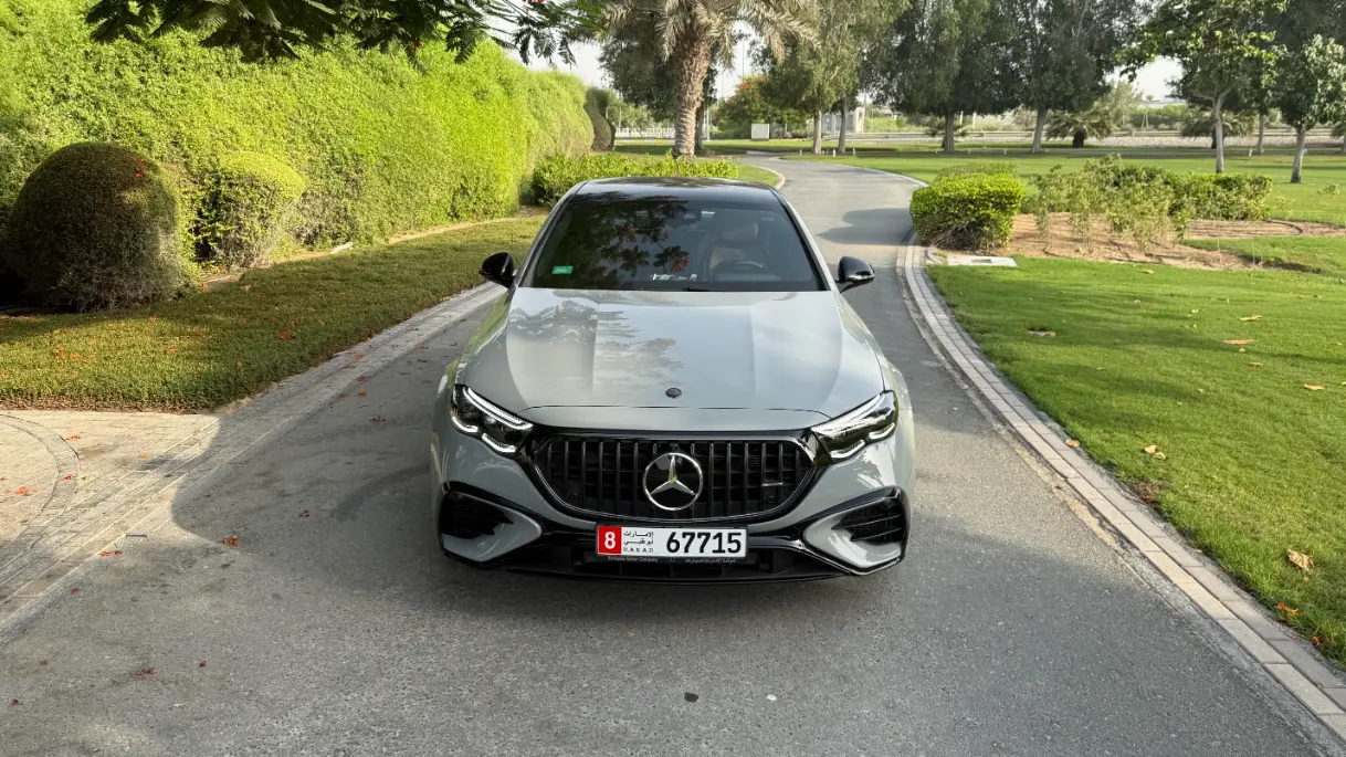 From the very first glance, the Mercedes E53 AMG Turbo Hybrid strikes a commanding presence. Its Panamericana vertical grille with the AMG badge leads the charge, flanked by crisp lines running the length of the body for a sleek yet muscular look. The car’s aerodynamic character is further enhanced by gleaming side skirts and signature quad oval exhausts in the rear.