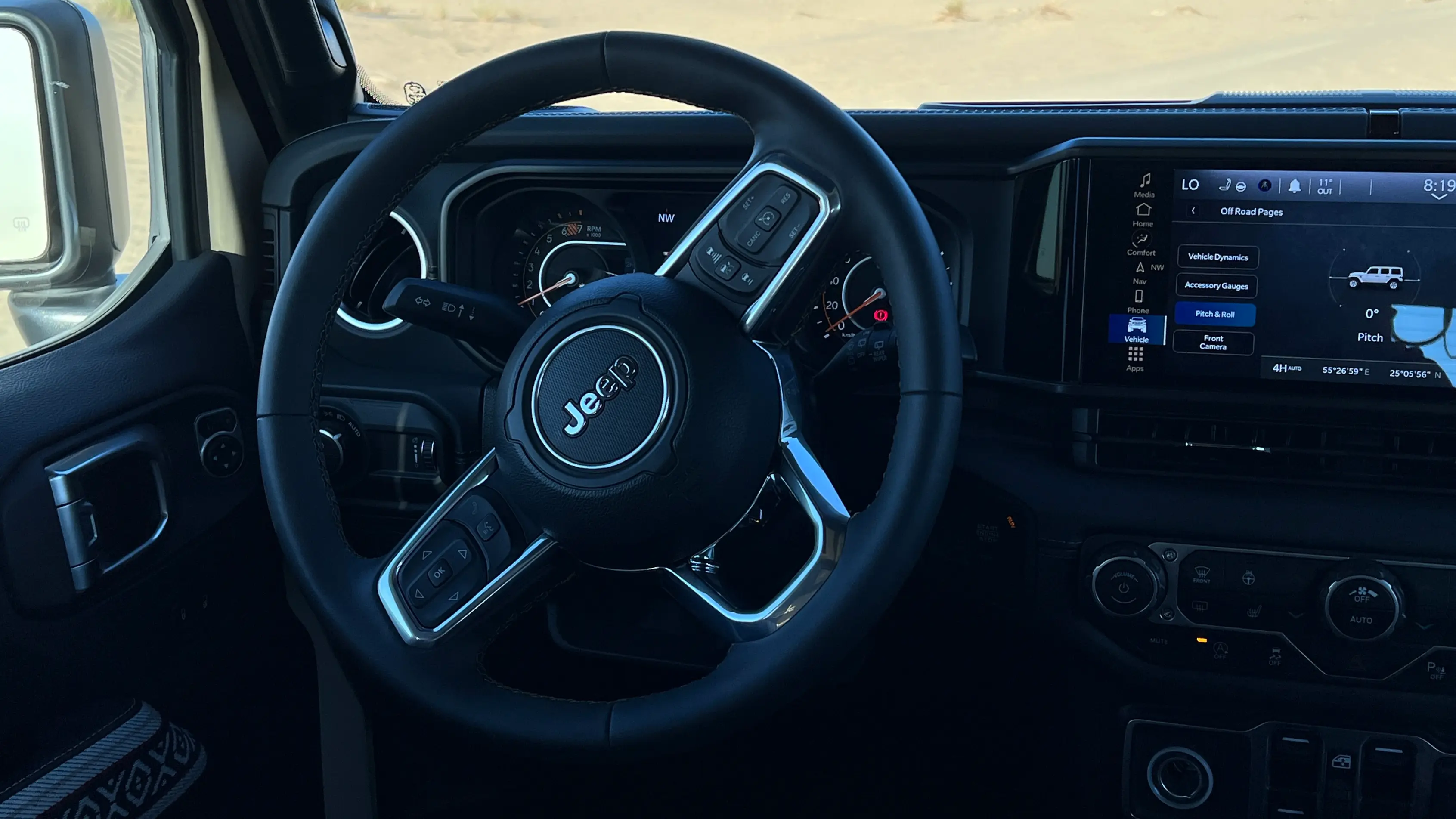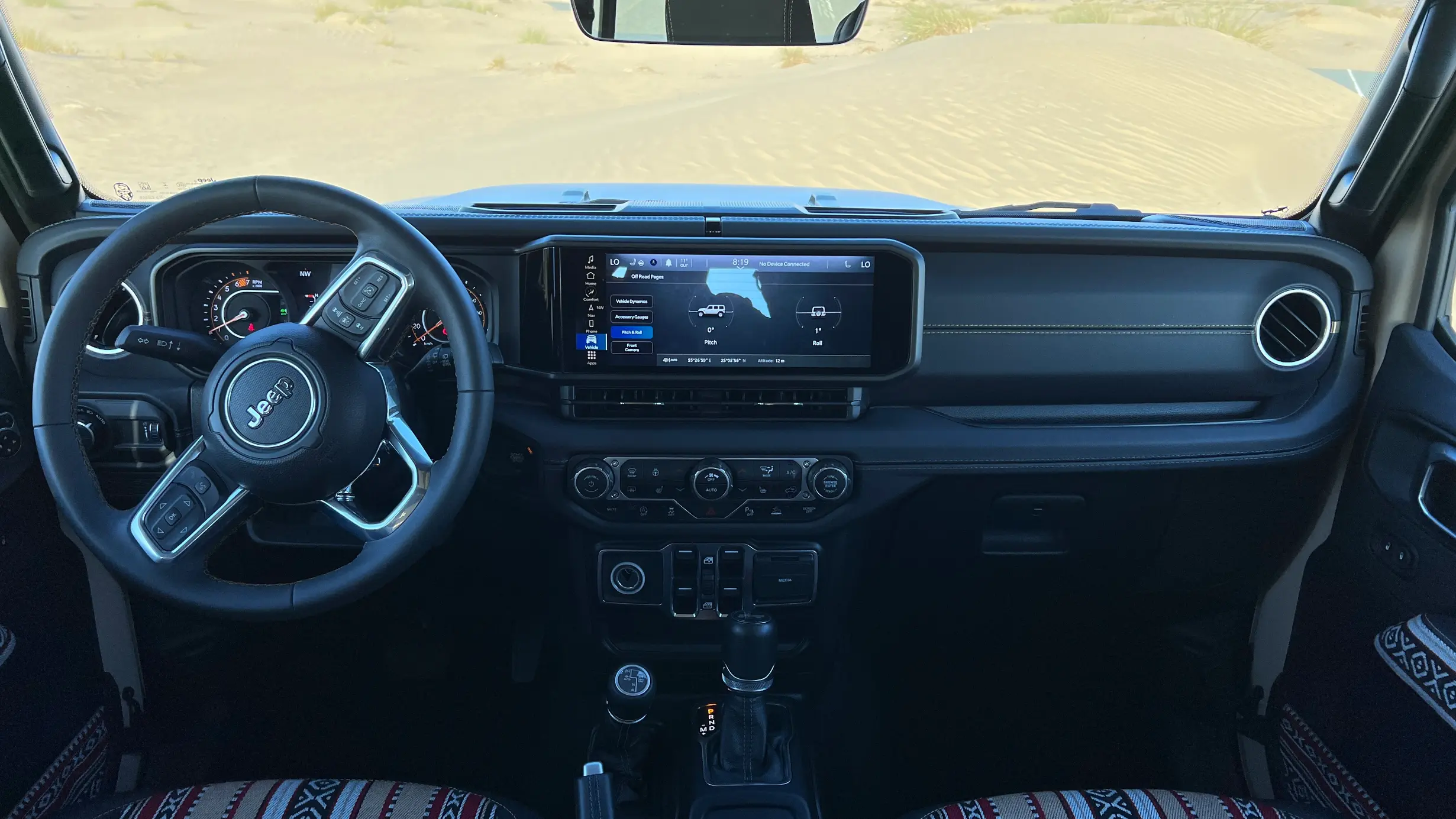 While its exterior and interior honor the rich cultural heritage of the UAE, the Jeep Itihad Special Edition is equally committed to delivering a cutting-edge driving experience. At the core of the cabin lies a sophisticated touchscreen infotainment system, offering seamless access to navigation, entertainment, and real-time vehicle diagnostics. With support for Apple CarPlay and Android Auto, connectivity is intuitive and effortless.