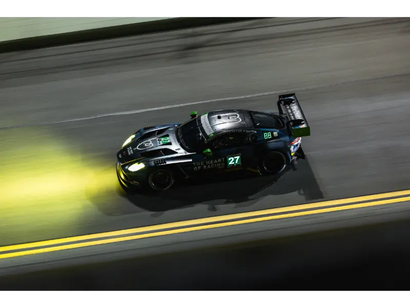 The Phoenix-based Aston Martin Racing partner team, which will lead the works Valkyrie programme when it embarks on its dual FIA World Endurance Championship [WEC] and IMSA campaign in 2025, was among the GTD pace-setters throughout the 24 hours. From seventh on the grid, Zacharie Robichon (CDN), Tom Gamble (GBR), Mattia Drudi (ITA) and Casper Stevenson (GBR) led by the fourth hour as they ran a different pit sequence to most of their class rivals. This, coupled with excellent speed on-track and execution in the pits meant that the car was still in a podium position when it was spun off the track by a rival with three hours to go and fell to sixth. Buoyed by Aston Martin works driver Drudi, who drove a masterly final stint in the closing hours of the race, Number 27 Vantage relentlessly climbed the order and with half an hour left was part of an intense three-way fight for victory. After swapping the lead several times in a dramatic final 20 minutes, Drudi took the chequered flag in third place on his IMSA debut; his result giving the newest version of Aston Martin’s most successful racing car – the Vantage GT3 – its first podium finish at Daytona. This also meant a fourth podium in four years for the Vantage GT3 (including the previous iteration), which shares the mechanical architecture of the ultra-luxury Vantage road car. Built around Aston Martin’s proven bonded aluminum chassis and powered by its fearsome twin-turbo 4.0-litre V8 engine, the Vantage GT3 is armed with world-beating potential.
