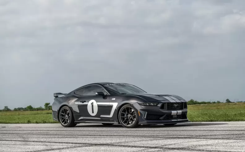 The 2024 Ford Mustang Dark Horse is the performance version of the acclaimed 'S650' Mustang. The stock Dark Horse has a naturally aspirated Gen-4 Coyote 5.0-liter V8, to which Hennessey adds a high-performance supercharger, high-flow air induction system, upgraded fuel injectors and fuel pump, plus Hennessey’s rigorously developed engine management system.