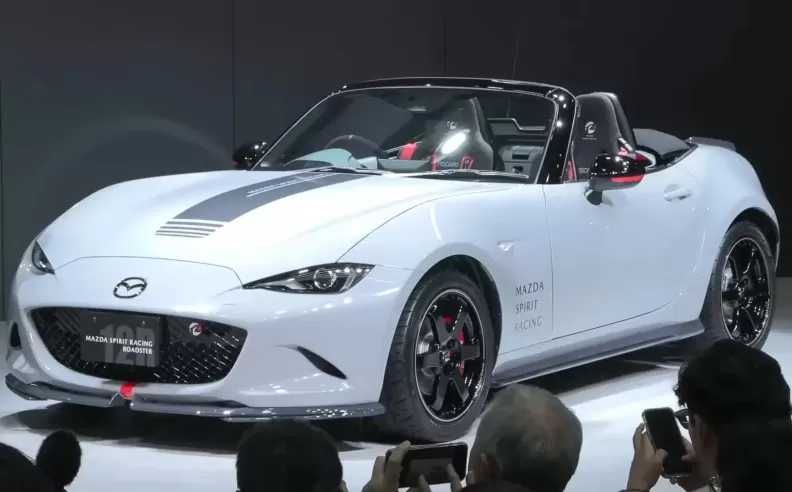 Mazda has unveiled the Spirit Racing Roadster 12R, a limited-edition Miata designed to push boundaries. First previewed at the Tokyo Auto Salon, this exclusive model offers a perfect blend of power, style, and handling upgrades tailored for the Japanese market. The 12R stands out with an aerodynamic body kit finished in Aero Gray, forged Rays TE37 lightweight wheels, and Yokohama Advan AD09 tires. These upgrades enhance its iconic lightweight design, while Brembo front brakes and Bilstein height-adjustable dampers ensure sharper performance.