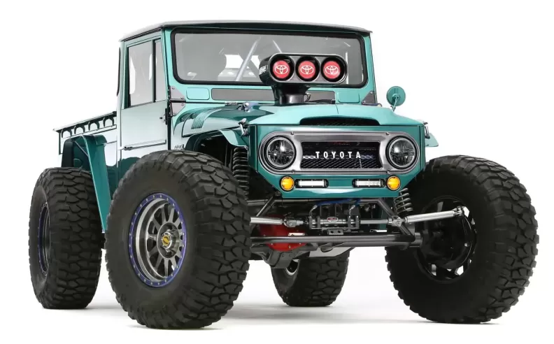 While the rear axle sports tank treads, the Land Cruiser FJ Bruiser retains five wheels on the front axle for versatility. This setup allows it to tackle a variety of terrains and obstacles, giving the driver the best of both worlds when it comes to off-roading. Whether you need the grip of tank treads or the agility of traditional wheels, the FJ Bruiser has you covered.