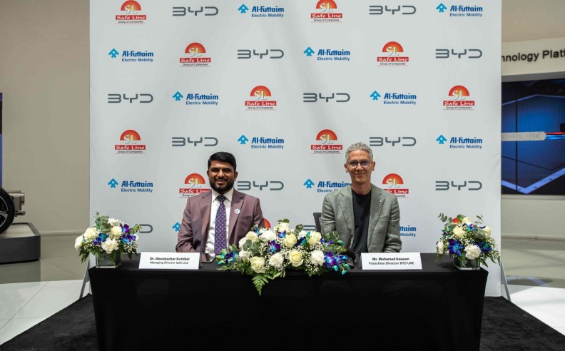 BYD, the world’s leading producer of new energy vehicles (NEVs), today announced a significant Memorandum of Understanding (MoU) with Safeline Group, a prominent electrical and mechanical distribution leader in the UAE.