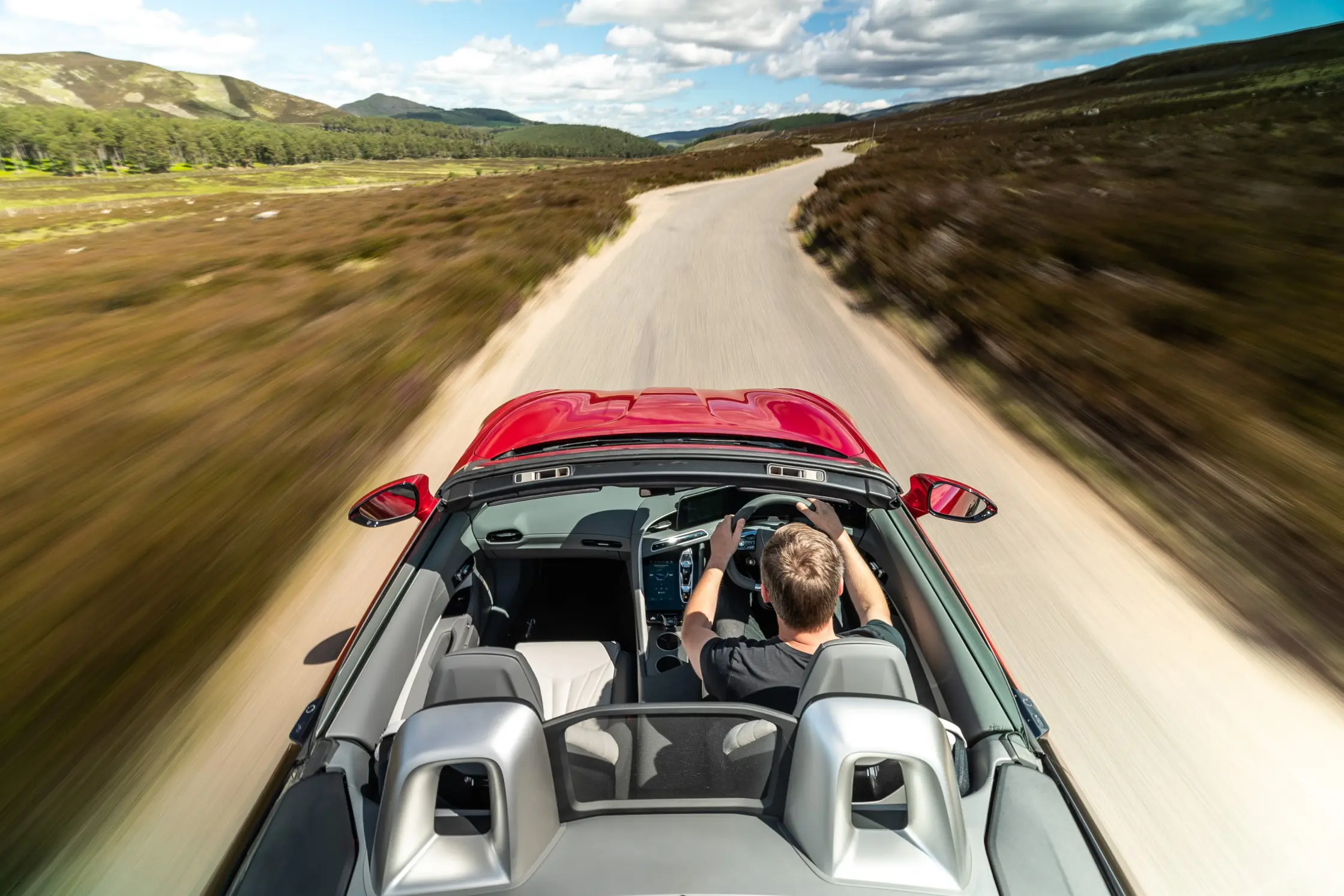 Inside, the MG Cyberster feels more like a high end gaming cockpit than a traditional sports car. A triple screen display wraps around the driver, and premium materials like Alcantara and leather are everywhere. The seating position is classic sports car — low, supportive, and perfect for long drives.