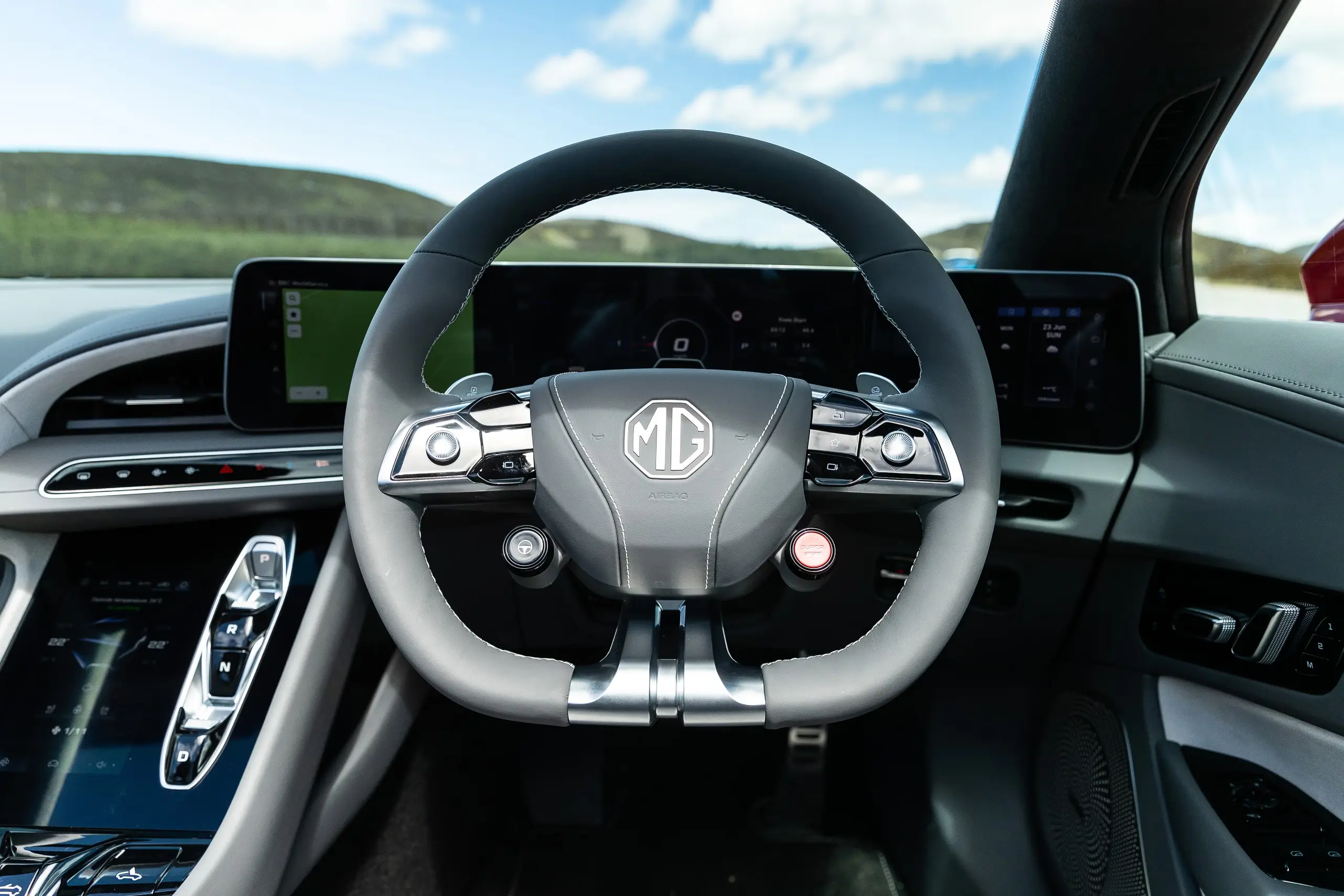 MG didn’t cut corners on safety. The Cyberster features Level 2 ADAS, adaptive cruise control, lane keep assist, blind spot monitoring, automatic emergency braking, and a 360 degree camera system. With four airbags, stability control, and a driver monitoring system, it covers all the basics and more.