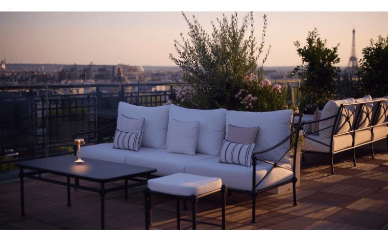 عادت استراحة Céleste بحلّتها الصيفية على الترّاس التابع للطابق العاشر في فندق شيڤال بلان باريس، حيث يتحوّل تصميمها الشتوي المغلق، الذي يتّخذ شكل فقاعة، ليكشف عن ترّاس مفتوح يُطلّ على أروع مناظر العاصمة، من كاتدرائيّة نوتردام إلى القُبّة الذهبيّة لـفندق Les Invalides، مرورًا بمتحف أورسيه ووصولًا إلى برج إيڤل.