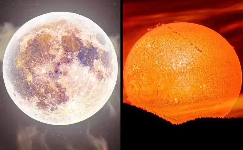 شهد العالم مؤخرًا حدثًا فلكيًا استثنائيًا بعد أن نجح مصور مبدع في التقاط مشاهد نادرة ومذهلة للشمس والقمر لم يرها أحد من قبل. من وهج الشمس الخام الذي ينبض بالطاقة إلى ملامح القمر المدهشة بألوانه المعدنية الغنية بعناصر التيتانيوم والحديد، قدم هذا المصور رؤية بصرية غير مسبوقة حول جمال الكون. حولت عدسته الحقائق العلمية الباردة إلى مشاهد حية تنبض بالعاطفة والإحساس، لتجعلنا نرى السماء كما لم نرها من قبل.