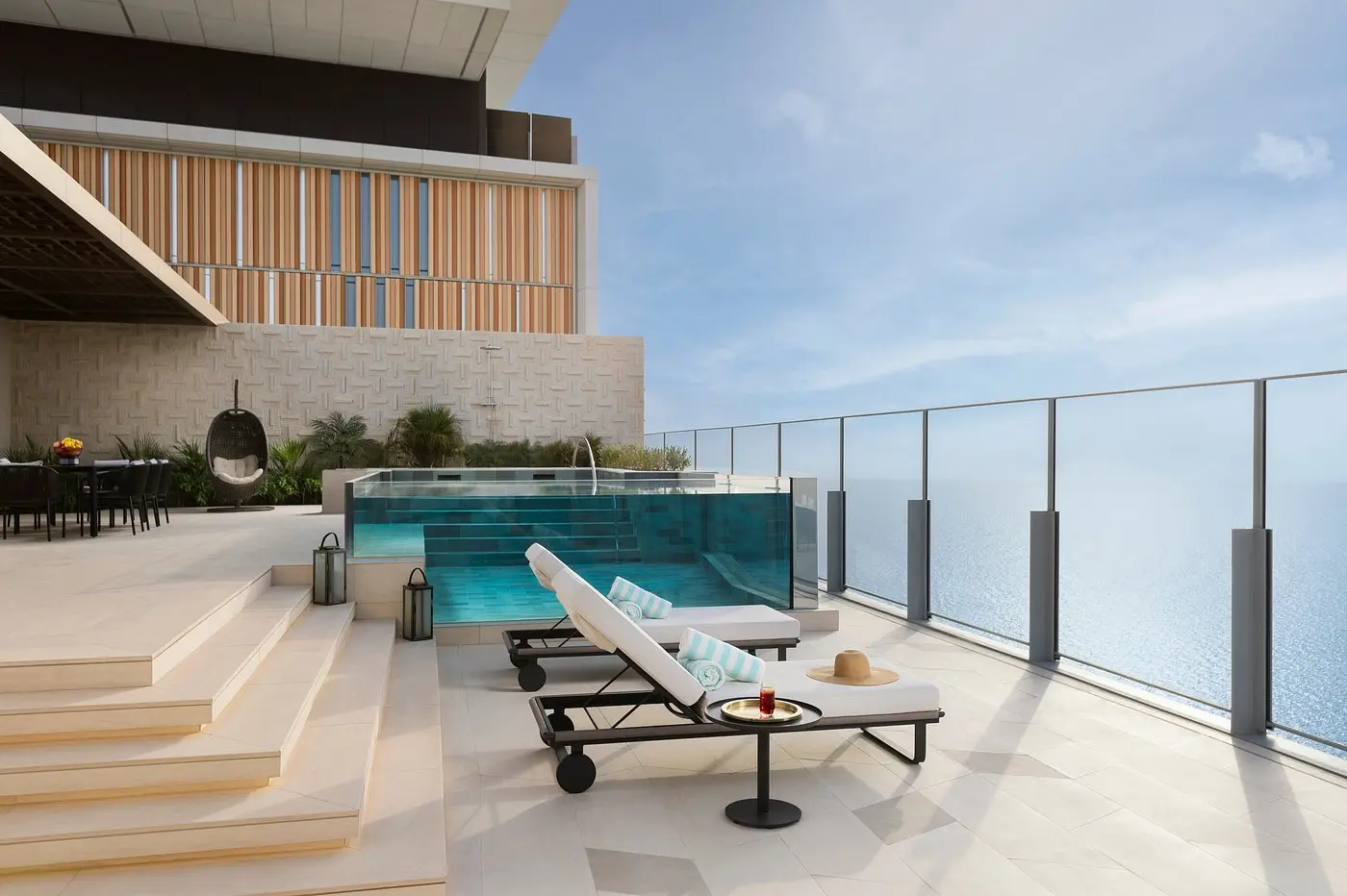 Every suite at Atlantis The Royal opens to a breathtaking view either the shimmering Arabian Gulf or Dubai’s glittering skyline. The resort stretches across 43 floors of pure sophistication, blending modern design with ultimate relaxation. Select suites feature private infinity pools and outdoor terraces, creating the perfect balance between privacy and indulgence. From custom furniture to soft lighting and seamless details, each element is crafted to elevate the guest’s comfort into an art form.