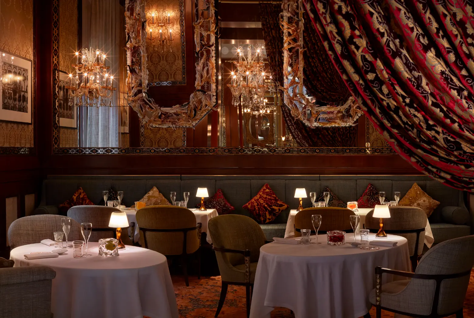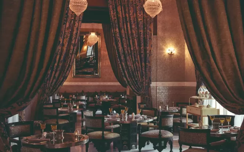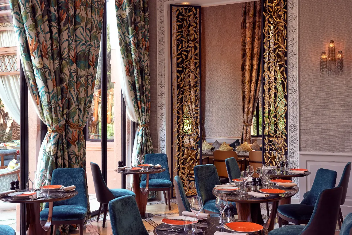 Hélène Darroze also heads the kitchens at La Grande Brasserie, where she blends French tradition with Moroccan splendour. From table-side theatrics such as meat carving and flambéing to an ice-cream trolley, the restaurant’s rituals are reminiscent of Parisian brasseries and highlight the chef’s luxurious cuisine, inspired by her Basque roots and local produce. On the menu, guests can savour delicate hors d’oeuvres, hearty casseroles, the finest grilled meat and fish, and a gourmet chicken menu on Sundays. Already a classic!