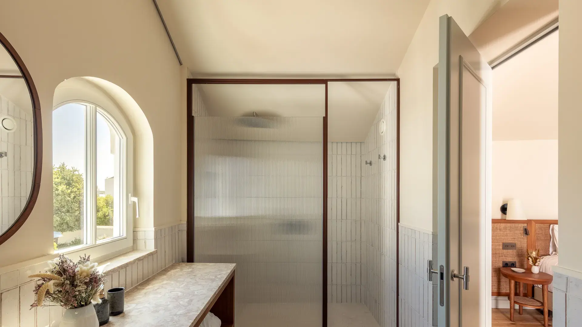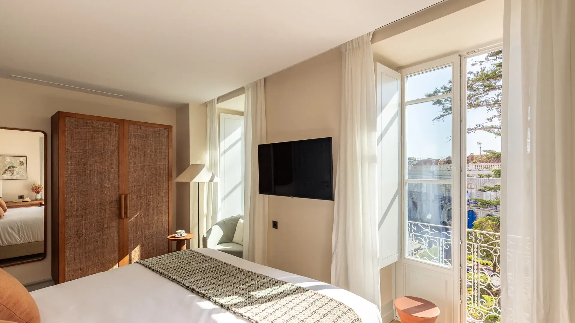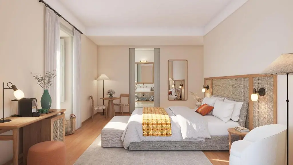 The vision started with Marugal, the Spanish group known for boutique luxury hotels such as Cap Rocat in Mallorca. Partner Arnaud Laporte discovered Tavira and realized the city matched Marugal’s philosophy of blending local identity with upscale hospitality. Behind a 19th-century façade, the hotel preserves original details like stone staircases and ornate arches, while a new wing called “La Medina” draws inspiration from the city’s Arab past, featuring whitewashed rooms and traditional Portuguese tiles.
