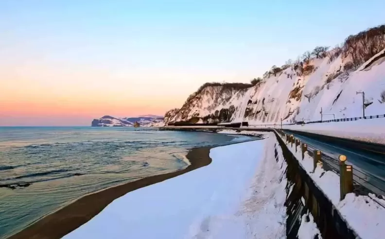 It’s the kind of place that makes you rub your eyes to check if you’re dreaming. On the northern tip of Japan, in Hokkaido, winter creates a scene that feels impossible: snow piled on the shore, golden sand still visible, and waves rolling in as if nothing unusual is happening. Travelers who stumble upon it often say the view sticks in their memory long after they leave.