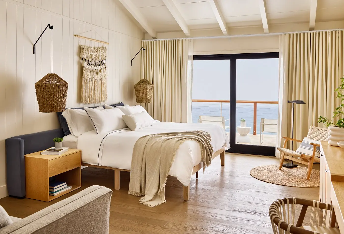 Every room and suite is crafted for comfort with oversized beds, rain showers, and luxury amenities. Neutral tones and modern touches keep the focus on the panoramic ocean scenery framed by floor-to-ceiling windows. Guests also enjoy access to the exclusive Beach Club, where sunbeds, gourmet bites, and refreshing drinks are delivered directly to the sand for the ultimate beachside experience.