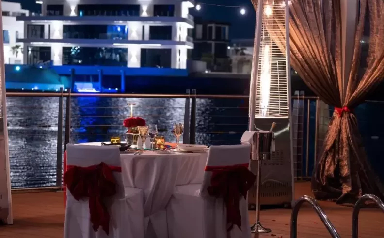 Presents Shangri La Qaryat Al Beri two distinct romantic options designed to elevate the night. Offers Bord Eau by Nicolas Isnard a refined French dining experience paired with live music, combining culinary precision with elegant ambiance.