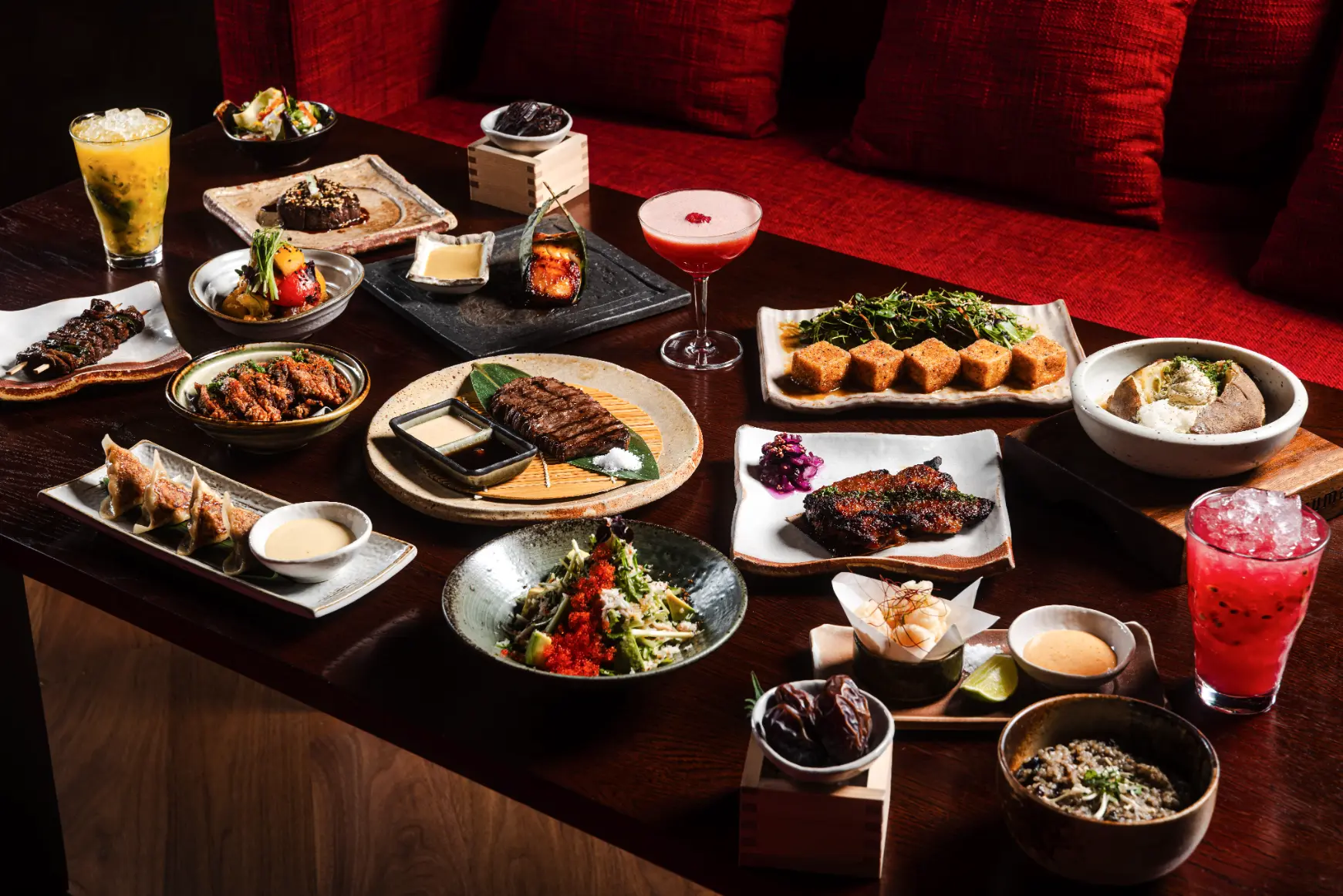As the sun sets over the skyline of the King Abdullah Financial District, guests are welcome to break their fast with a comforting bowl of miso soup followed by an array of sharing style starters. From the Crab Salad with avocado and the Wagyu Gyoza with seasonal mushrooms to the crispy Shrimp Tempura with lime and chilli dip, Roast Eggplant with smoked tofu sauce, and the Chilli Lemon Chicken Karaage.