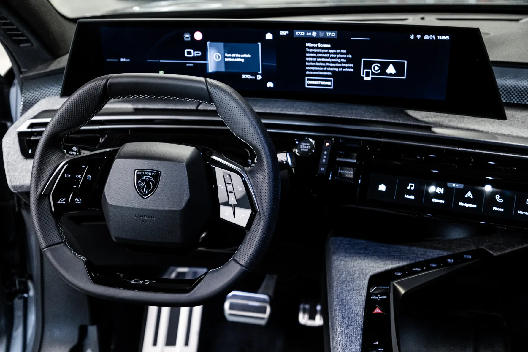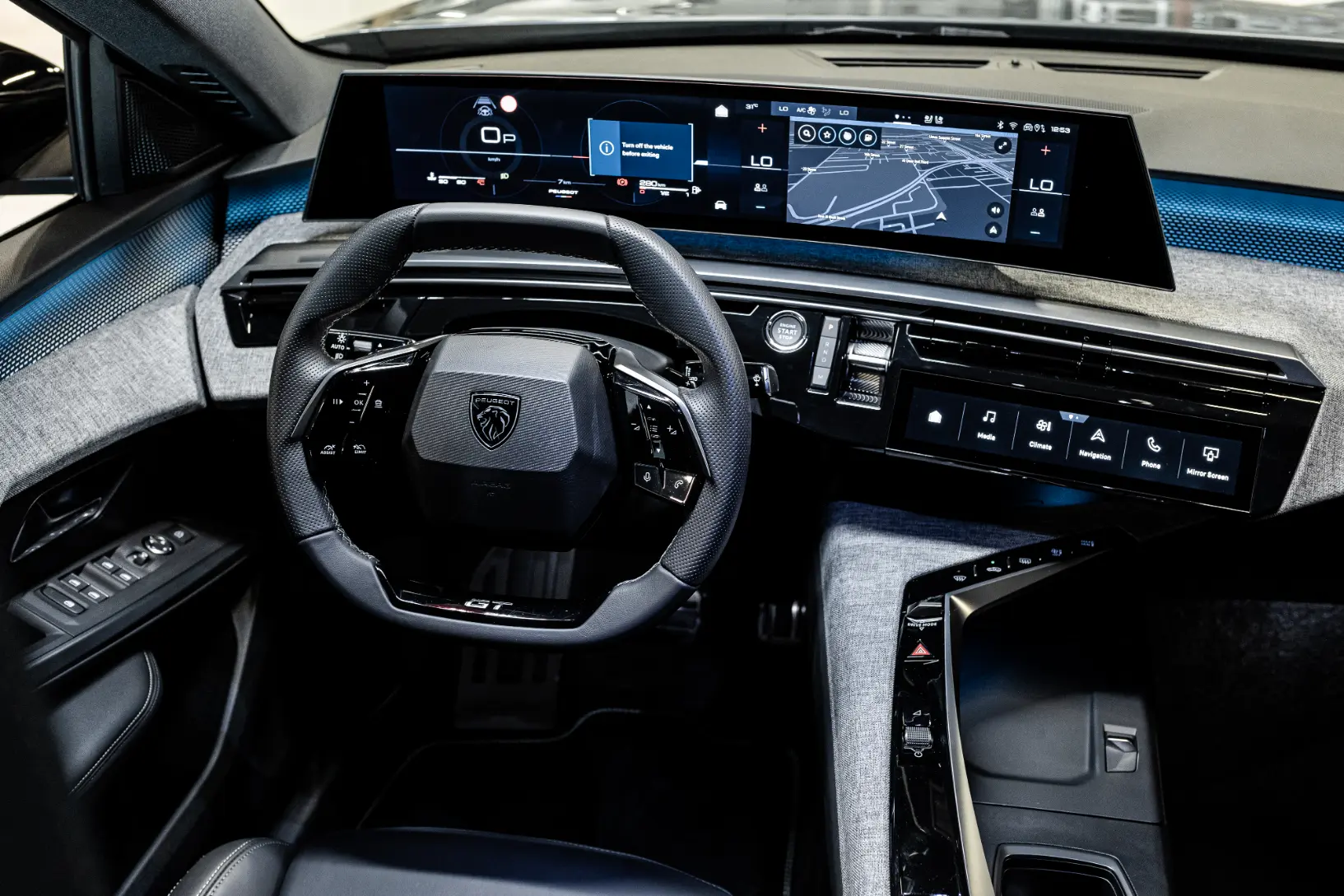 عند دخولك إلى المقصورة، سوف تستقبلك بيجو بتصميم i-Cockpit الشهير. وفي طراز GT من 3008، ستجد شاشة منحنية بقياس 21 إنشًا، وشحنًا لاسلكيًا، وأزرارًا قابلة للتخصيص، وموادًا معاد تدويرها تضيف طابعًا مستدامًا راقيًا. وسيمنحك المقود المسطح من الأعلى والأسفل شعورًا رياضيًا، بينما تضيف الإضاءة المحيطية التي يمكن ضبطها بثمان ألوان جوًا من التفرّد.
