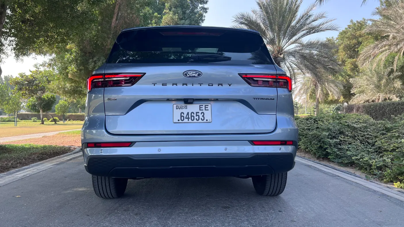 عند الاقتراب من فورد تيريتوري 2026 في ضوء الخليج القاسي، حيث لا يختبئ أي خط تصميمي، يظهر انطباعنا الأول واضحًا: سيارة متوازنة، واثقة، ولا تحاول المبالغة. فتأتي بتصميم تبرز فيه الواجهة الأمامية العريضة والحديثة، مع إضاءة LED كاملة تمنحها حضورًا مناسبًا سواء في مواقف المراكز التجارية أو خلال القيادة الليلية على الكورنيش. ما يلفت النظر أيضًا هو الطابع العملي، خصوصًا تصميم باب الصندوق الخلفي الذي يبدو مهيأً لحياة حقيقية مليئة بالمشتريات اليومية، وعربات الأطفال، وحقائب عطلة نهاية الأسبوع.