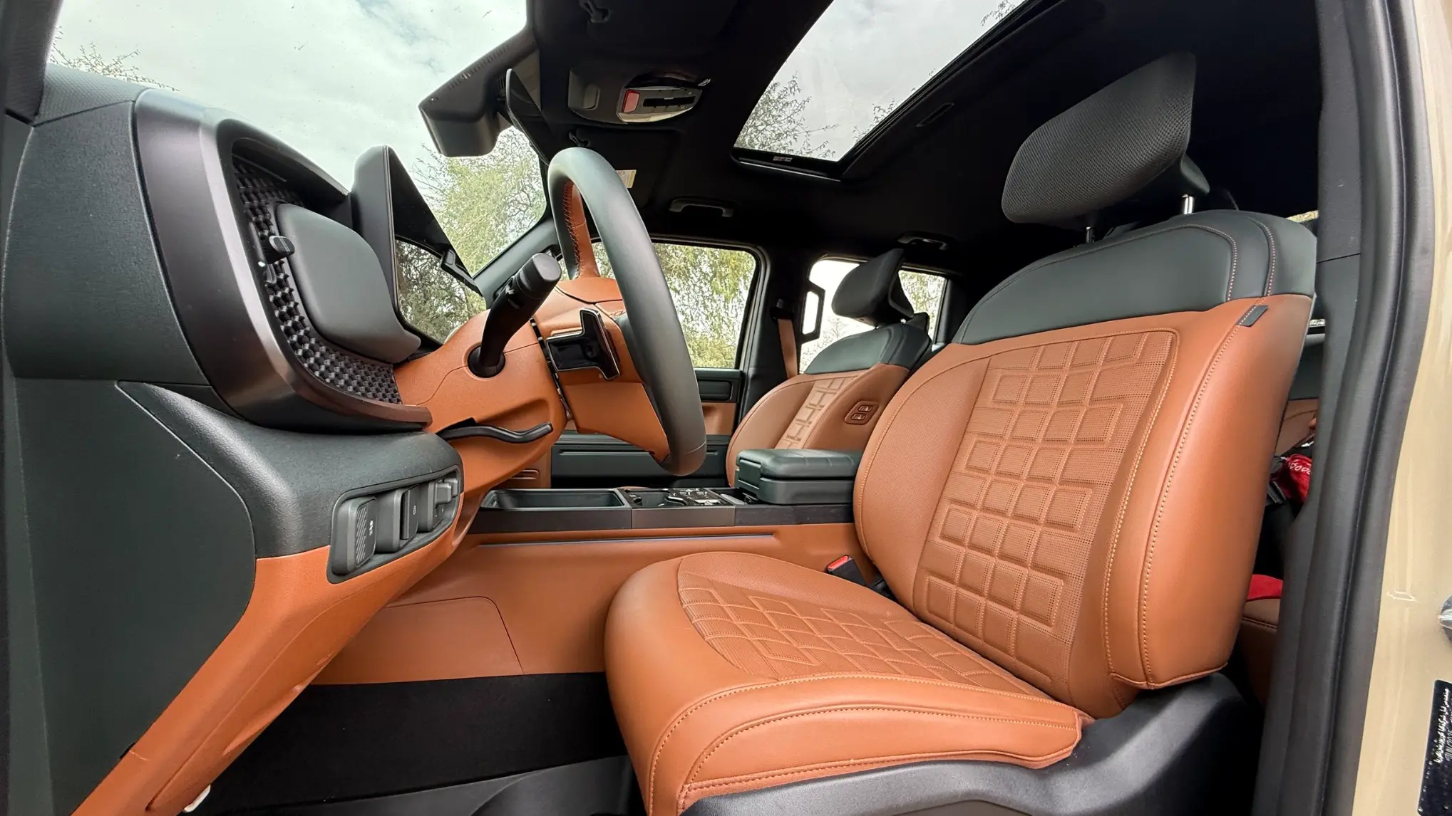 عندما تضغط على زر التشغيل وتتحرك كيا تاسمان لأول مرة، تدرك فوراً أنك لست داخل شاحنة تقليدية خشنة؛ فالهندسة الكورية نجحت في عزل المقصورة عن اهتزازات المحرك وضجيج الطريق بشكل مثير للإعجاب. تمنحك وضعية القيادة المرتفعة شعوراً بالسيطرة التامة على الطريق، بينما توفر الشاشات المنحنية والمقاعد المريحة إحساساً بأنك تقود سيارة اس يو في فاخرة، وليست بيك أب مخصصة للمهام الشاقة.