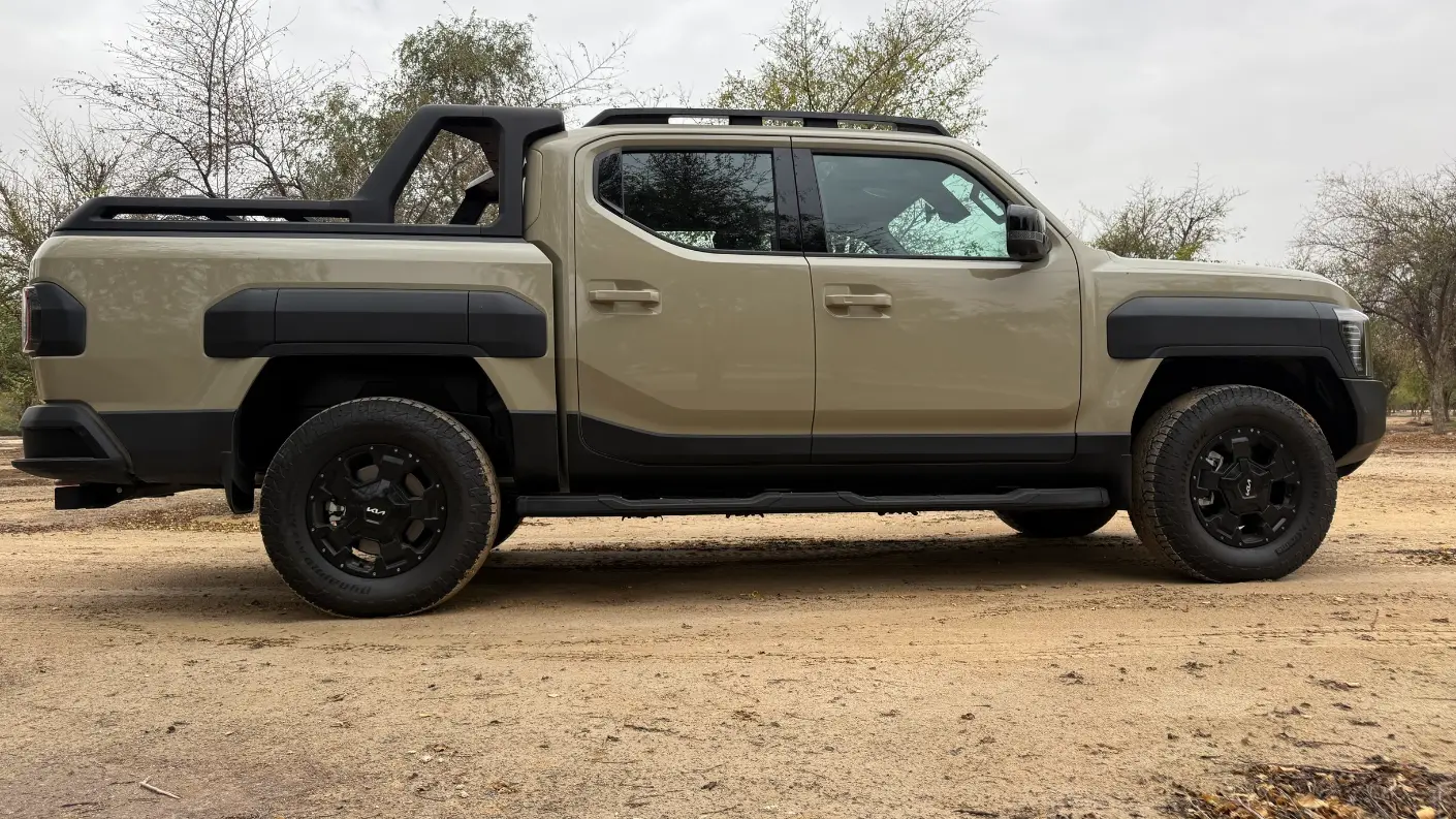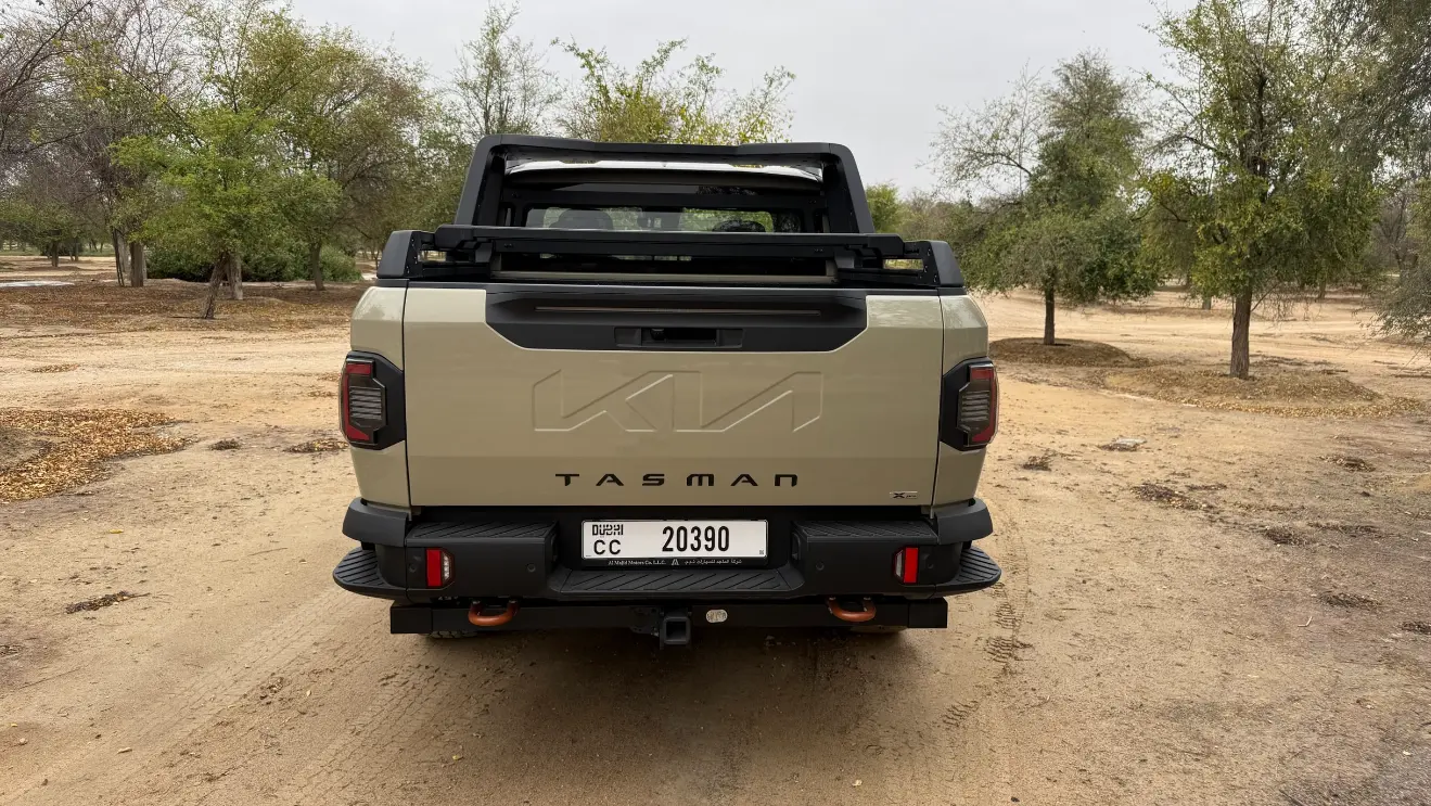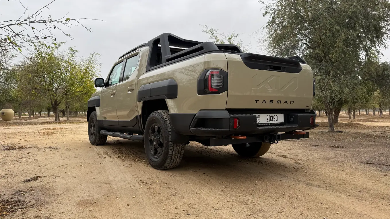 وجدنا من خلال تجربة قيادتنا أن كيا تاسمان تعتمد على لغة تصميمية جريئة وصندوقية تبتعد عن الانحناءات الناعمة لسيارات الكروس أوفر، لتركز على الوظيفة والقوة، فتبرز الشاحنة بواجهة أمامية عريضة وإضاءة عمودية مستوحاة من طرازات كيا الكهربائية الحديثة مثل EV9، مع رفارف جانبية بارزة تمنحها مظهراً عضلياً يوحي بالقدرة على اجتياز أصعب التضاريس.