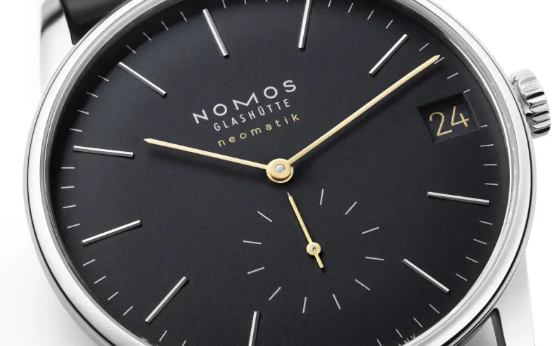 تمتاز ساعة Orion neomatik new black بتنوعها المذهل في الأحجام والتصميمات، مما يجعلها مثالية لمختلف الأفراد والمناسبات. بثلاثة أقطار مختلفة - 36.4، 38.5، و40.5 ملم - تلبي NOMOS Glashütte احتياجات مرتديها بدقة، سواء كانوا يفضلون ساعات أكثر نعومة أو تصاميم تصريحية أكبر. اللمسات النهائية باللونين الفضي والذهبي على القرص الأسود المجلفن تضفي على كل قطعة طابعًا فريدًا، بينما تضمن العيارات الأوتوماتيكية الفائقة الرقة، DUW 3001 وDUW 6101، ارتداء مريحا وأنيقا على المعصم. حتى الطراز الأكبر حجمًا، Orion neomatik 41 date new black، يتميز بارتفاعه الذي لا يتجاوز 10 ملم، مما يوفر توازنا مثاليا بين الأناقة والوظائف، بما في ذلك نافذة التاريخ الكبيرة ذات الأرقام الذهبية البراقة التي تضفي لمسة من الرقي.