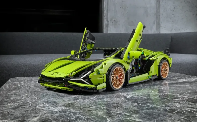 سيان هي أول لامبورجيني بمنظومة هجينة في التاريخ وقدمت في الأصل عبر 377 نسخة وعقدت الشركة تعاوناً واسعاً مع ليجو لتكوين عدة نماذج واحد حاكى هيئة السيارة بنفس حجمها الحقيقي والآخر أتى بهيئة مصغرة وإنتاج محدود أيضاً ليحاكي أدق أجزاء عمل السيارة فقطعة المحرك، الذي يعمل في الأصل عبر 12 أسطوانة، تضم مكابس تتحرك للأعلى والأسفل وتثبت بوسط السيارة تحت الغطاء الذي يضم الجناح الخلفي ويمكنك التحكم بزاويته كإشارة لذلك المتحرك الموجود في السيارة الحقيقية والمسؤول عن تعزيز الانسيابية بينما تظهر الأبواب التي تفتح للأعلى ومكونات النظام التعليق، تبدأ تجربتك الخاصة مع هذا المنتج من اللحظة الأولى حيث يأتي بعلبة فاخرة تحاكي مظهر سيان من الخلف ويناسب من هم فوق 18 عاماً ويضم 3696 قطعة بينما يبلغ سعره دولار أي 1652.5 درهم إماراتي و1688 ريال سعودي.