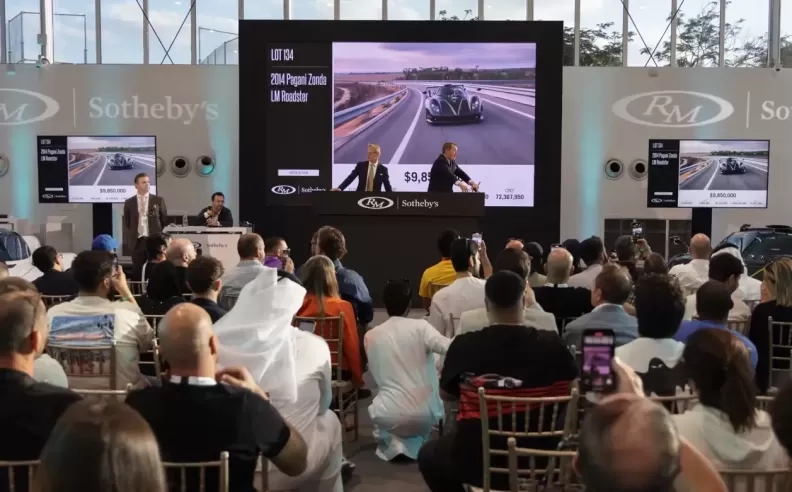 RM Sotheby’s rounded off the year with a remarkable final sale at the Emirates Golf Club in Dubai, held in partnership with the Mille Miglia Experience UAE. The sale was led by a duo of remarkable Paganis—seldom seen on the open market—which broke world records in a room packed with bidders.