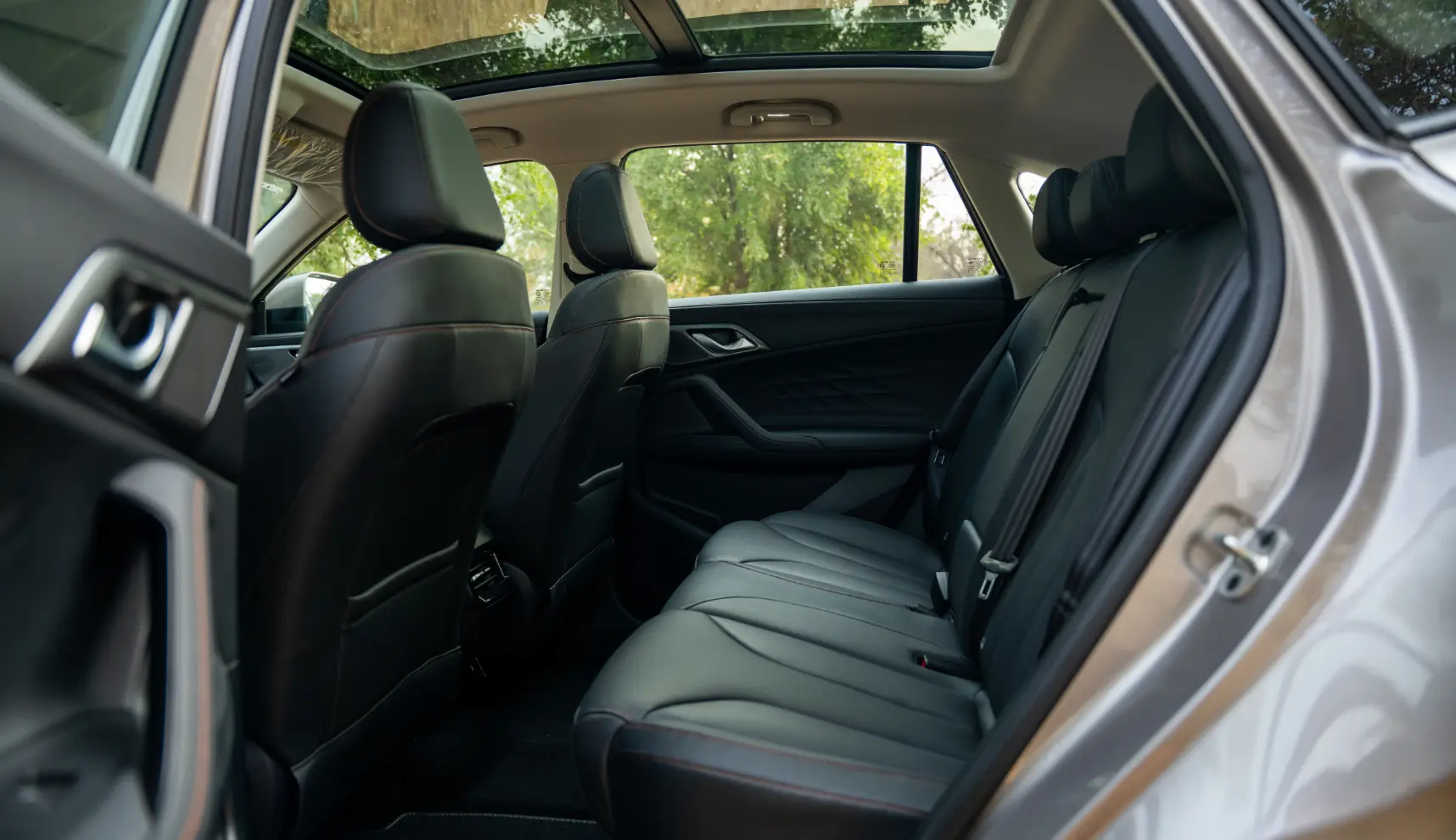 MG has prioritized comfort with leather-upholstered seats, complete with heating, cooling, and electronic adjustment options. Red stitching accents and soft-touch materials add a premium feel, which is unexpected at this price range. The panoramic sunroof enhances the sense of space, creating an airy and comfortable environment for all passengers.