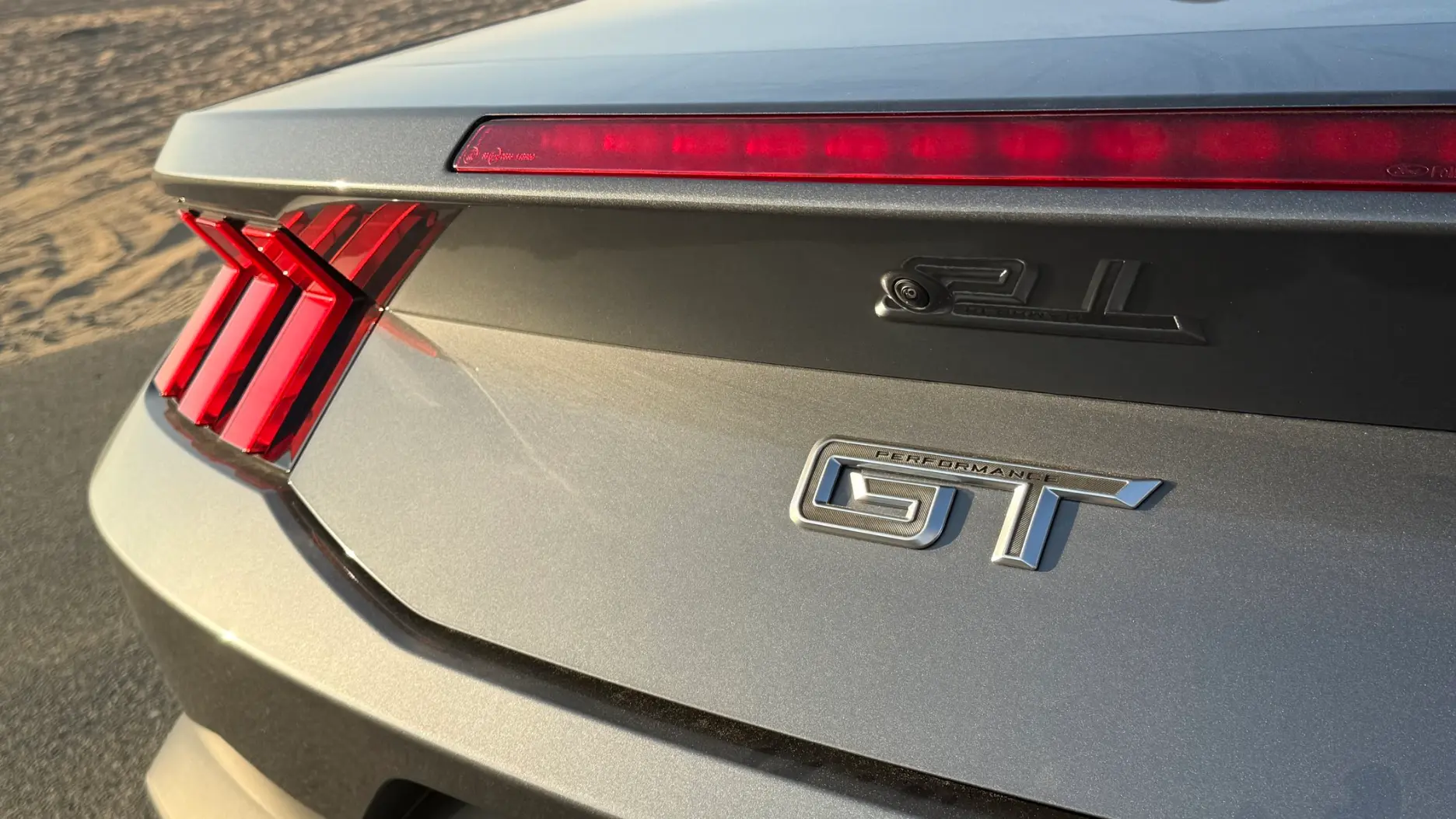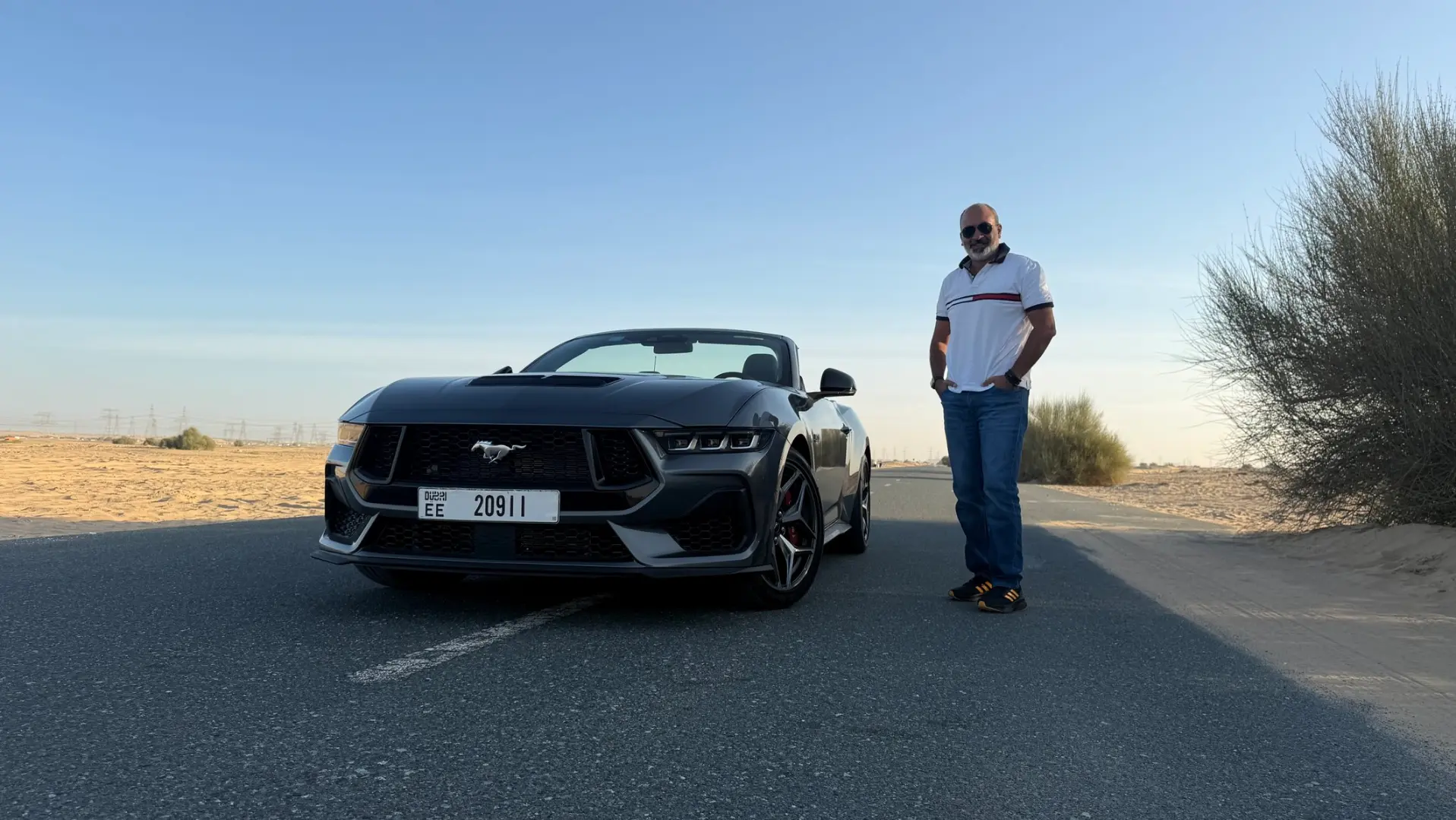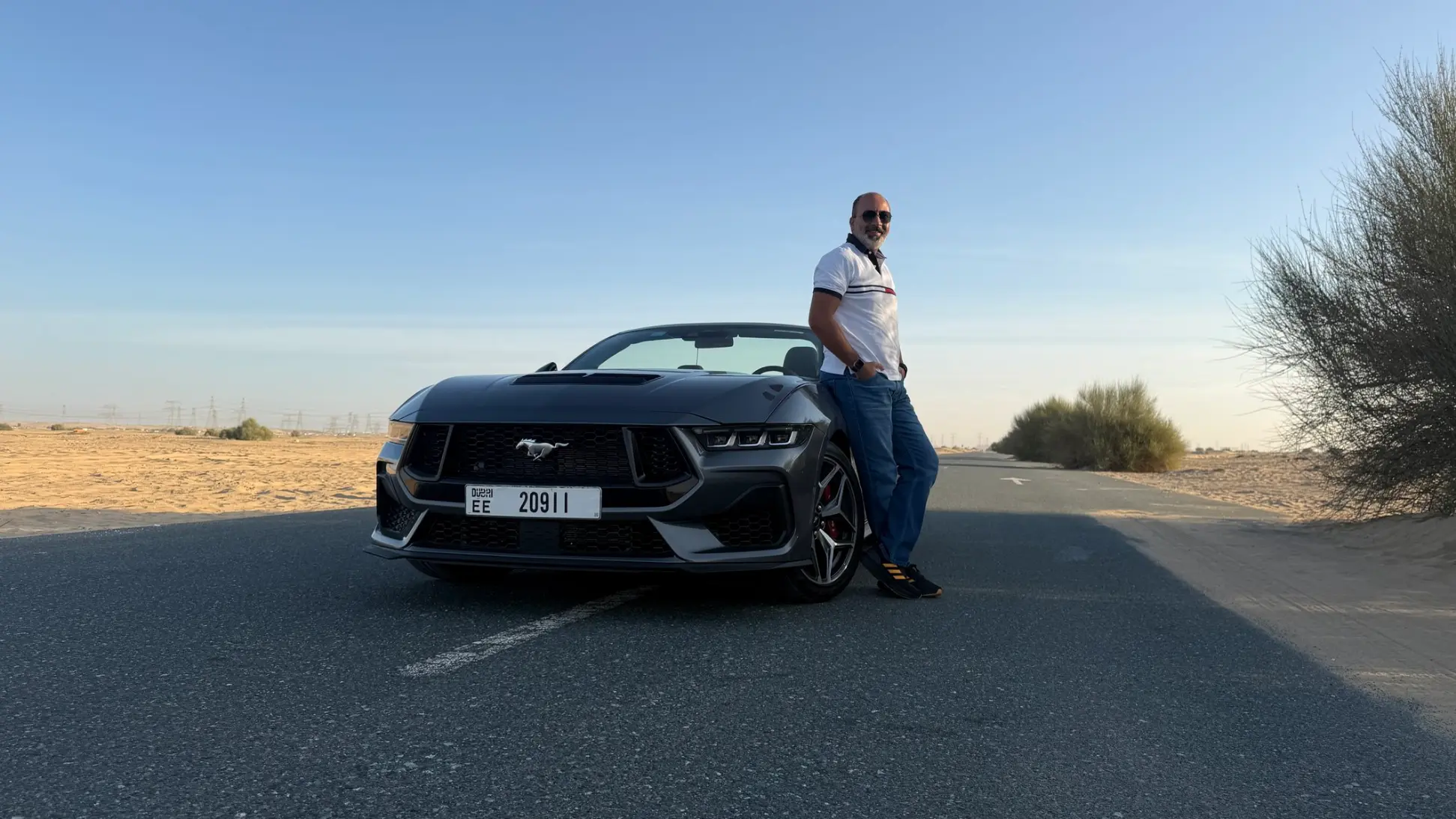 With the roof down, the Mustang feels perfectly suited to middle east weather during cooler months. Wind deflectors and smart airflow design help keep the cabin comfortable even at highway speeds. The rear design remains muscular, with tri bar taillights and dual exhaust outlets reinforcing the car’s muscle car identity.
