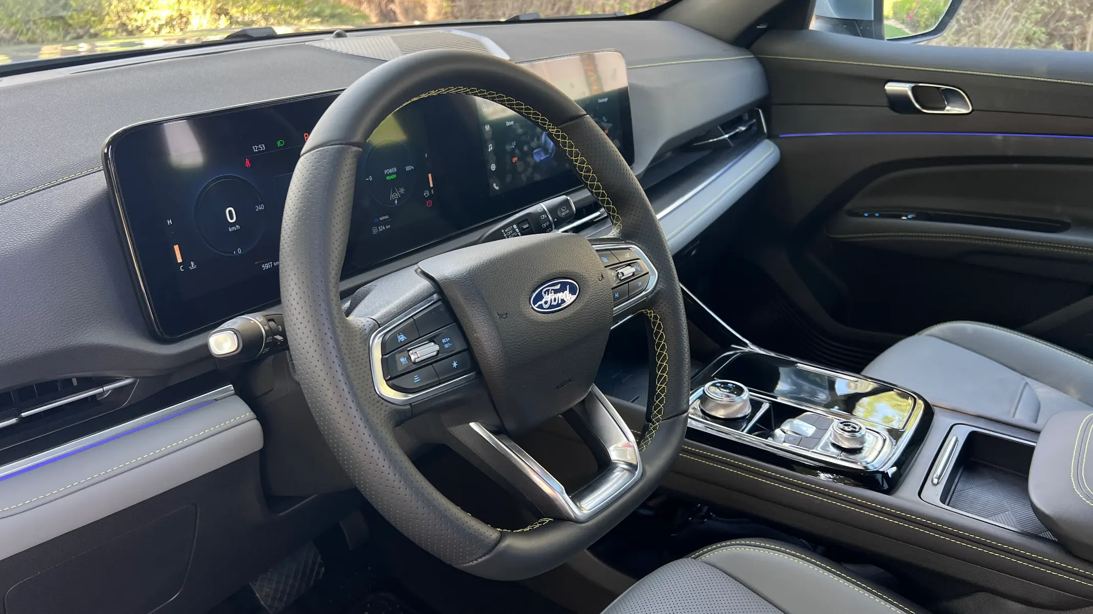 I pulled the door closed and the cabin felt like it was built for long days, not just short commutes. The screens are the first big visual moment. Up front you get a 12 inch center touchscreen, and depending on the version, the driver display can go up to 12.3 inches, so the whole cockpit feels current and easy to read at a glance. I liked that the layout made it natural to get comfortable quickly, with storage and controls placed like Ford expects you to use this SUV every day, not just admire it.
