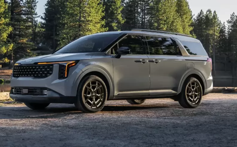 The most noticeable change in the 2025 Carnival is its striking exterior transformation. The minivan now boasts a robust and chiseled design, featuring Kia's large rectangular grille, cube headlights, and the distinctive "Star Map" LED running lights. The overall effect gives the Carnival a pronounced SUV aesthetic, setting it apart from conventional minivan styling.