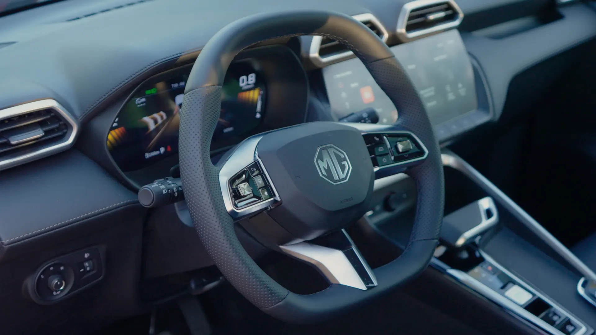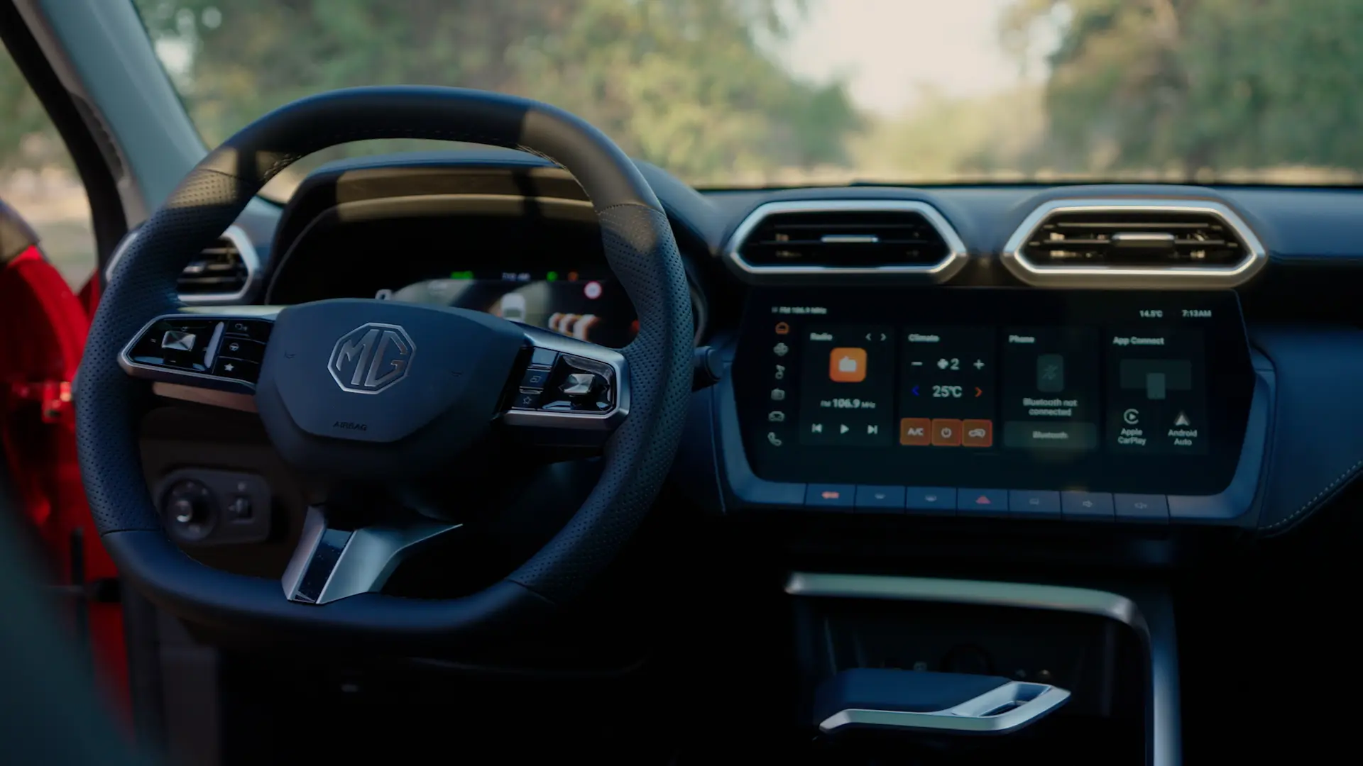 Step inside, and the differences are even more noticeable. The 2025 model introduces dual 12.3-inch screens with updated graphics, smoother interface, and support for Apple CarPlay and Android Auto. The cabin feels more upscale, with soft-touch materials replacing the harder plastics of the previous model. MG also redesigned the center console and added clever storage spaces, a flat-bottom steering wheel, and a panoramic sunroof to elevate the interior experience.