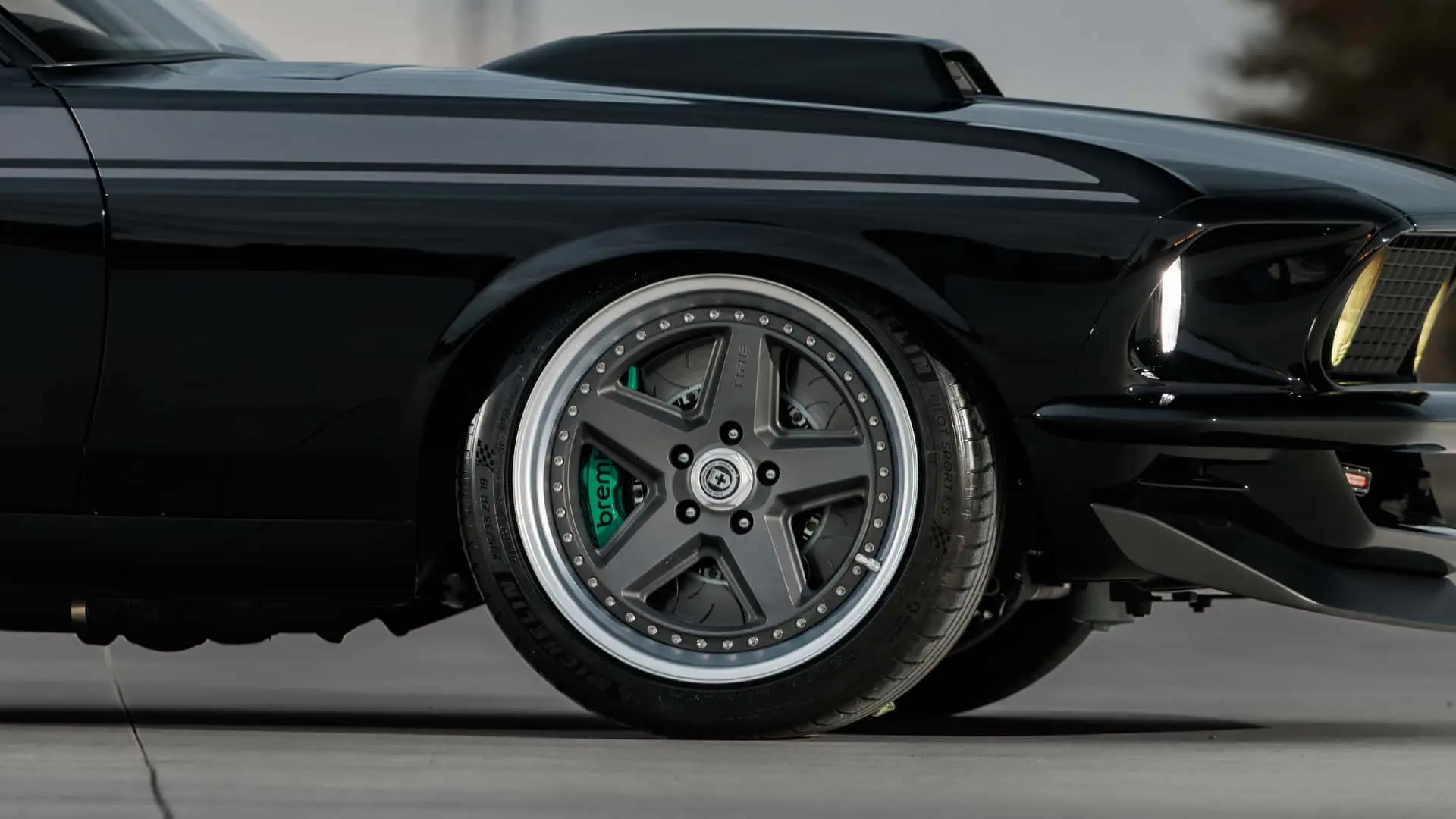 Ringbrothers started with a full teardown of the original Mustang, rebuilding it from the ground up on a modern Roadster Shop unibody platform. This switch from a body on frame to a unibody structure brought new levels of stiffness and handling. The chassis features a dual arm suspension with Fox RS coilovers for balanced comfort and sharp performance, while lightweight HRE wheels wrapped in Michelin Pilot Sport 4S tires provide outstanding grip.