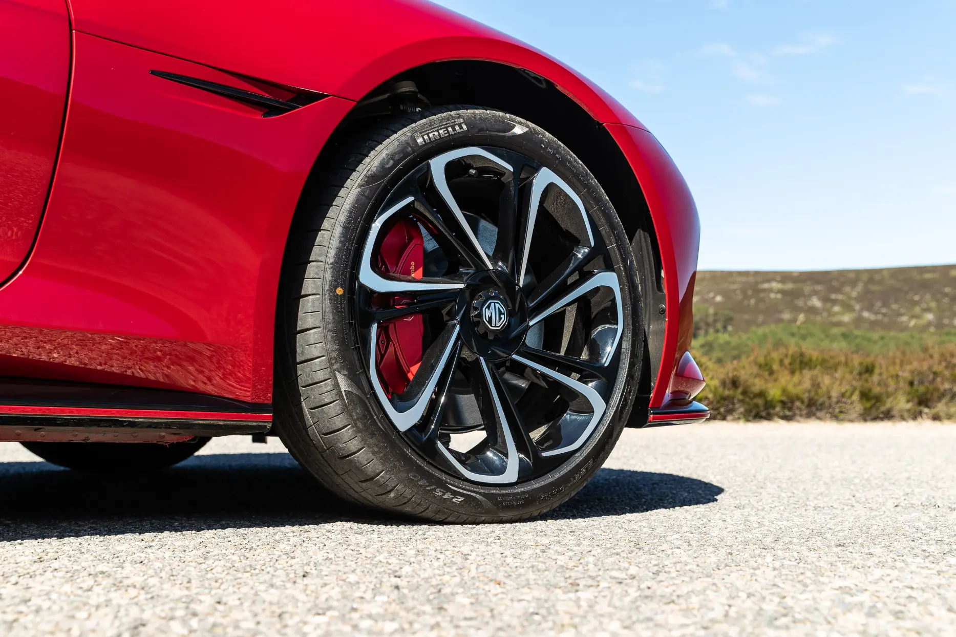 The MG Cyberster looks nothing like any other car in the brand’s recent lineup. With its sharp LED headlights and arrow shaped nose, it draws inspiration from modern tech and classic roadsters. The showstopper is the electric scissor doors that open in seconds, paired with a soft top roof that folds away in under 15 seconds even while driving up to 48 km/h. Sitting on 20 inch turbine style wheels and wrapped in Pirelli P Zeros, the Cyberster’s low stance and sculpted lines make it stand out anywhere.